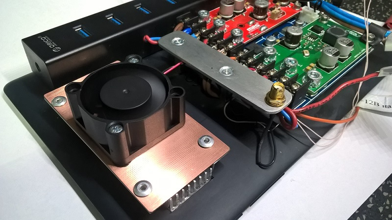 При одновременной работе нескольких "тяжёлых" приложений и сильном нагреве процессора (ко всему прочему на нём стоит очень солидный радиатор) "выбивало" воспроизведение музыки. Температура на поверхности радиатора доходила до 56С! Решили сделать обдув радиатора, как самое простое решение.