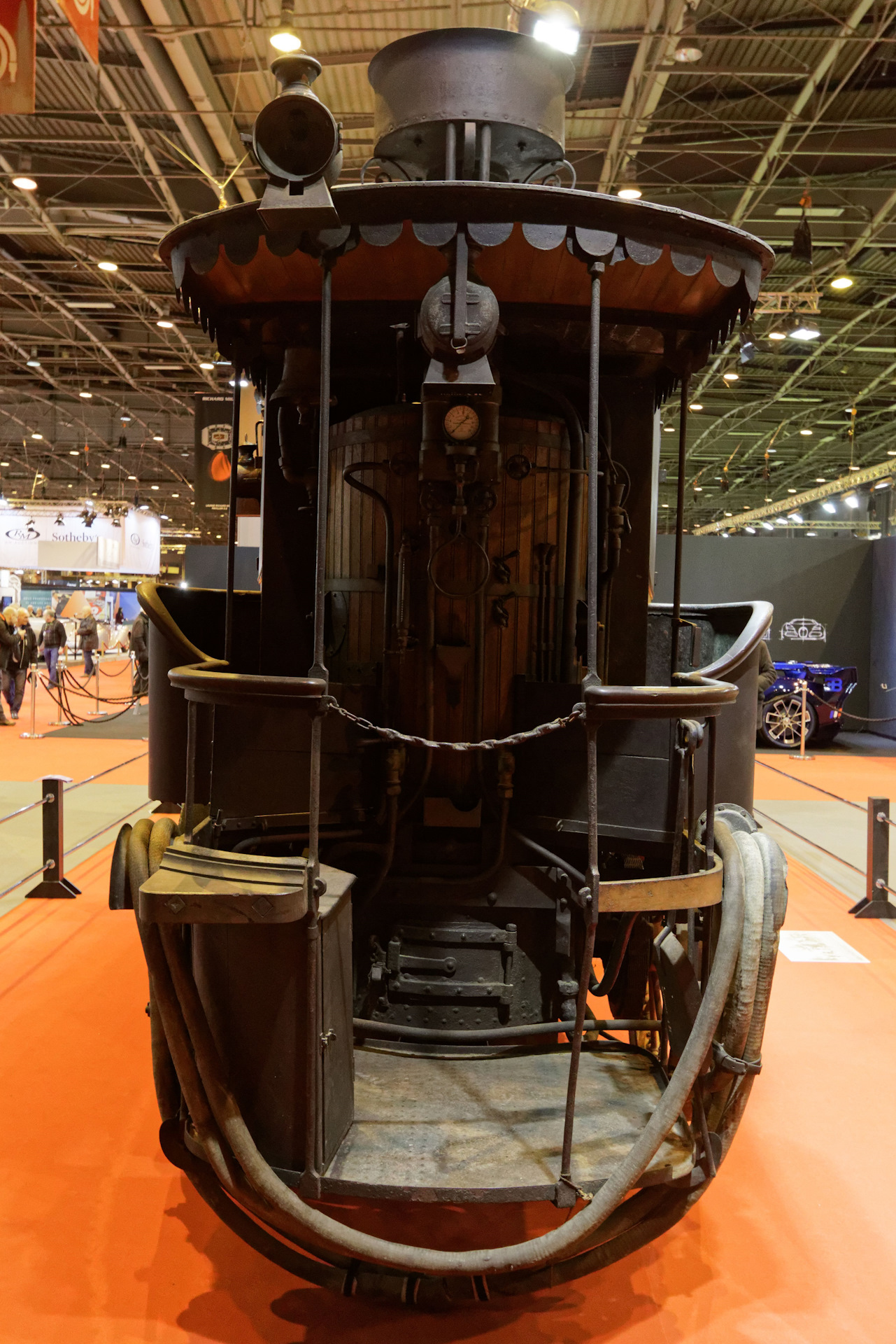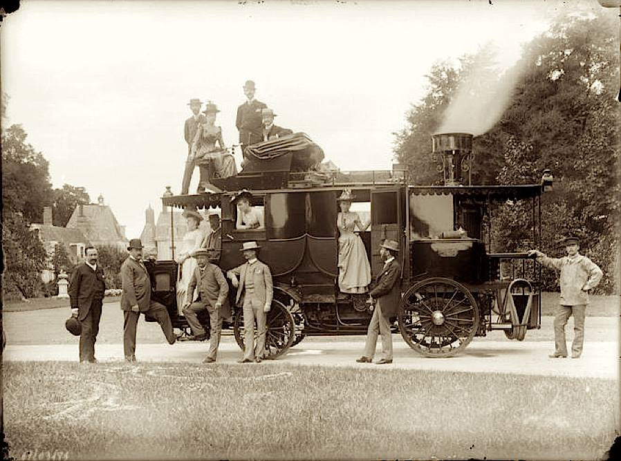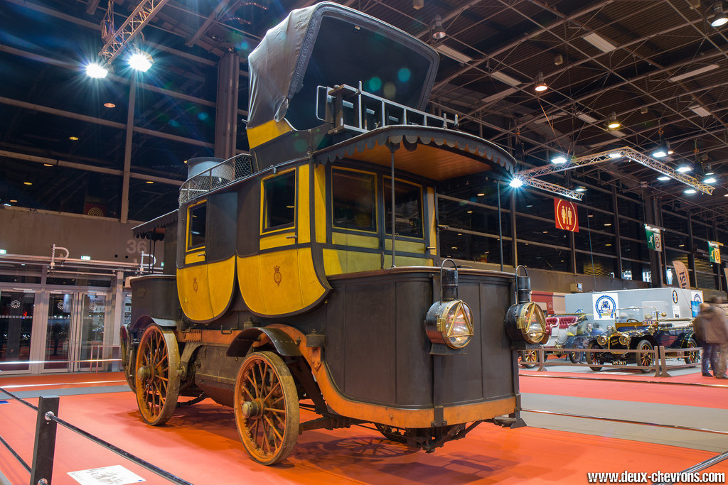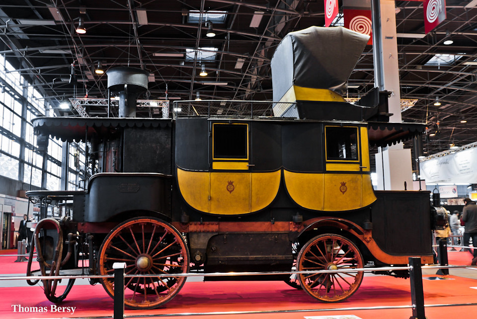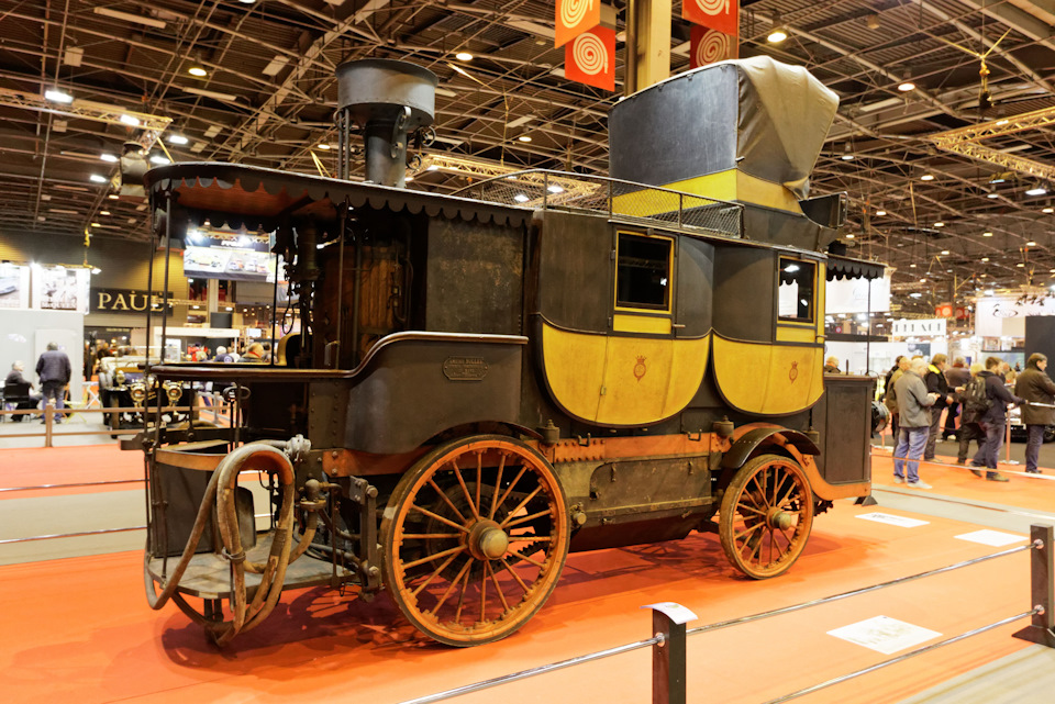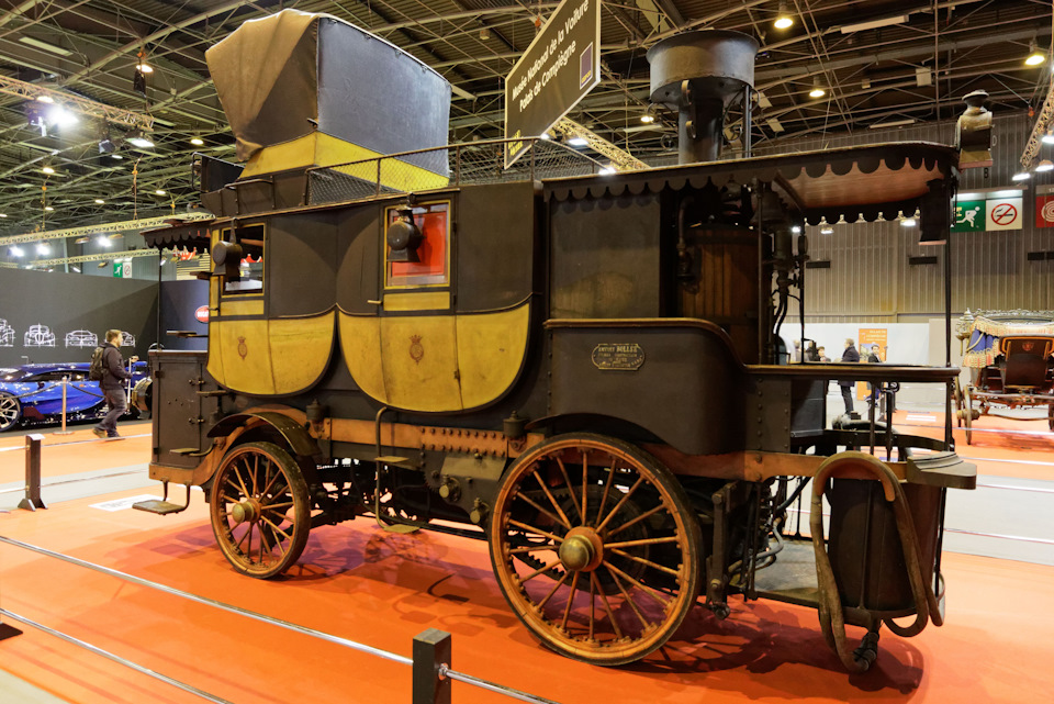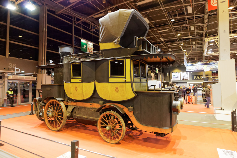 Наверно этот аппарат можно назвать первым представительским лимузином. Спереди открытая кабина для водителя, позади два пассажирских отсека, наверху еще один отсек со складывающейся крышей. Сзади котел.
