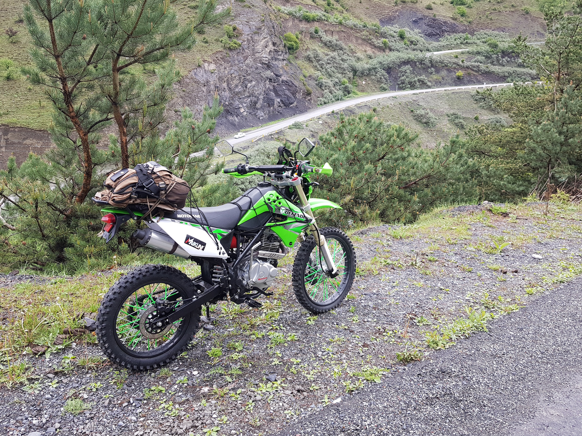 Ну и 2 моих железных коня, правда они не арабские скакуны а китайские, но это им не особо мешает ехать туда, куда повернут руль, главное с головой дружить, и руль к н обрывам не поворачивать, которых тут кстати хватает, и они за каждым поворотом, горы же как ни как.