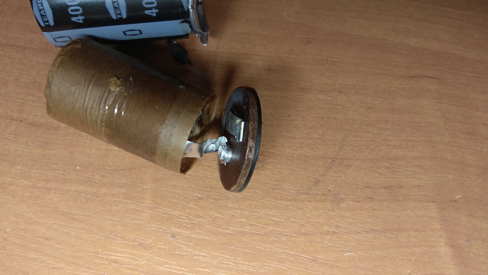 По низковольтным TEAPO тоже наблюдается схожая ситуация — потеря емкости без вздутия, или выпирает резинку с выводами, а корпус и насечки на торце — на месте