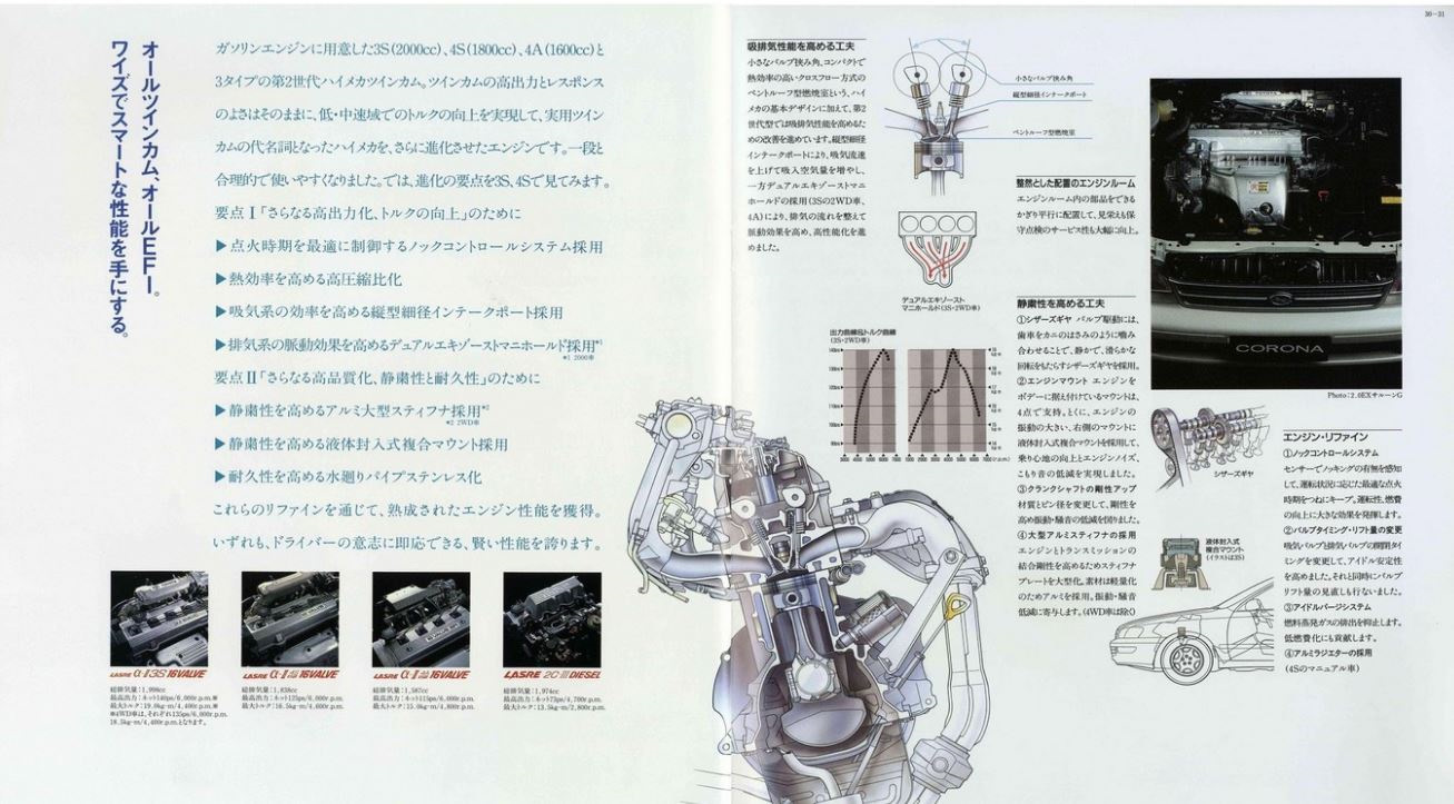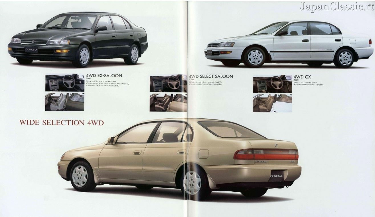 2. 4S-FE, 1.8 л., 125 л.с. Версии и привод – как и с мотором 4A. Стоит отметить, что эти машинки получили наиболее широкое распространение, как «золотая середина» и самый оптимальный выбор. Году так в 2003-м город был буквально заполнен ими. Своеобразный пик. В течение следующих лет начнут заходить машины следуещего поколения – от 97-го года выпуска и далее, постепенно оттесняя «бочки» на второй план, в частности, ее логическим продолжением – Corona Premio. О ней мы тоже обязательно поговорим, но отдельной статьёй;