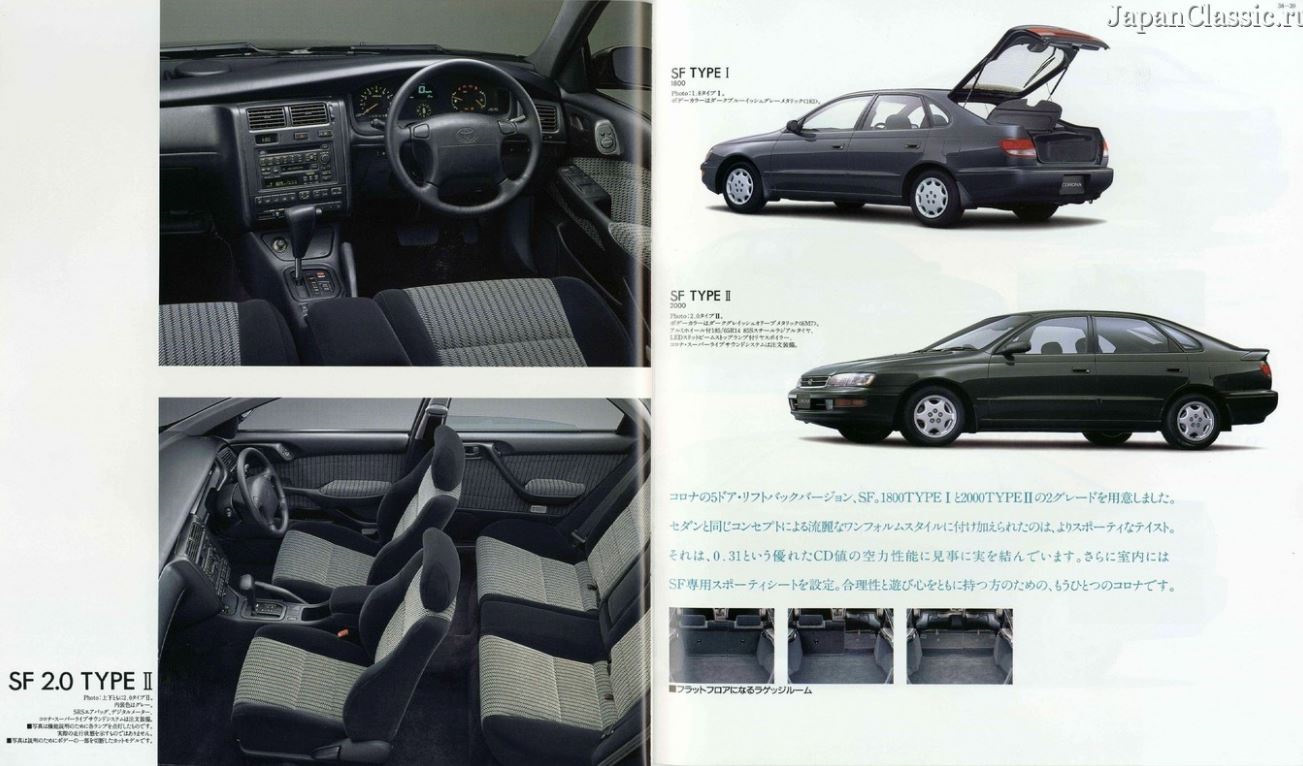 Была и особая версия в кузове лифтбэк – Toyota Corona SF. Насколько мне известно – наиболее близка к леворульной версии Carina E, поставляемой на рынок Европы (где, кстати, завоевала определенную популярность). Сегодня эта ниша занята лифтбэками Skoda Octavia, что лишний раз говорит о востребованности таких машин. В Японии же SF продавалась не так хорошо. Ну и на вторичке хоть и встречались, но достаточно редко. Лично я помню всего 1 или 2 машины, которые попадались по городу в те времена. Ещё помню, как соседские пацаны травили басни, что это особая бочка, а SF – это Sport/Super и еще что-то там про F. Forever, видимо.