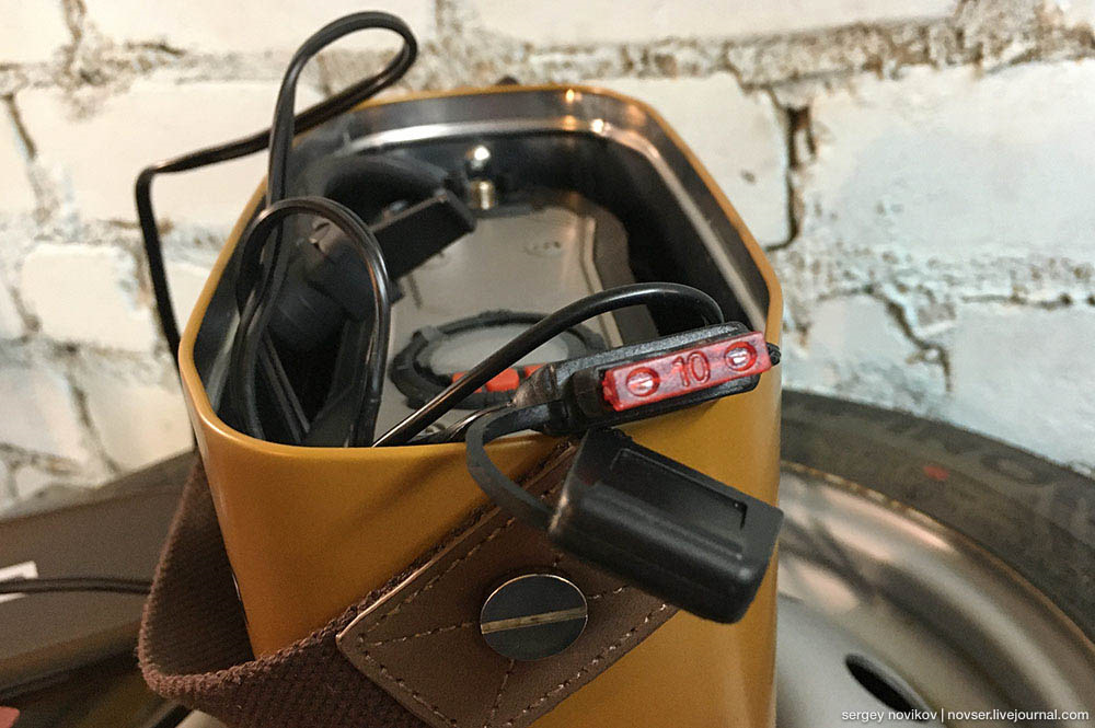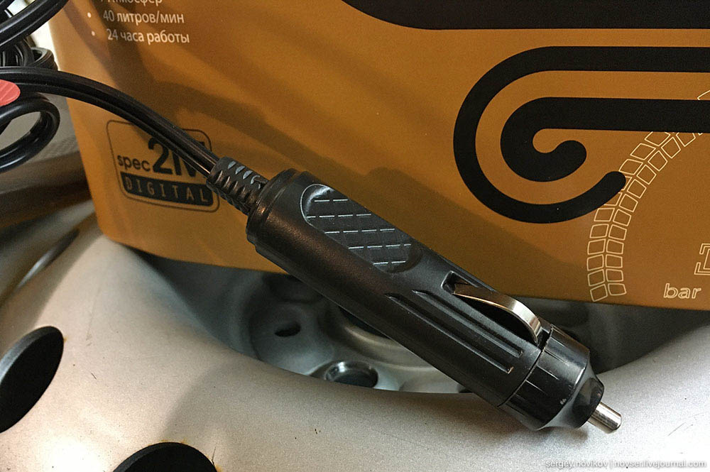 На проводе имеется плавкий защитный предохранитель на 10 A. Длина провода питания составляет 3 метра. На мой взгляд этого вполне достаточно даже для того, чтобы подкачать прицеп, запитавшись от розетки в багажнике.