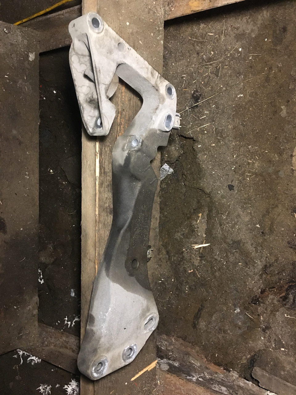 После того как поддомкратили, откручиваем и вытаскиваем болт через сквозное отверстие в кронштейне, который держит раздатку. Далее откручиваем сам кронштейн головкой на 16