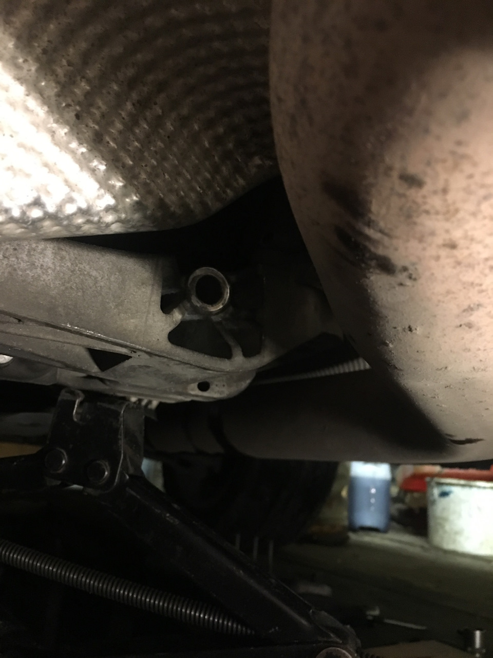 Чтобы добраться до пробки необходимо сперва снять защиту ( головка на 8 мм.). Далее необходимо поддомкратить раздаточную коробку, для того, чтобы снять кронштейн, который ее фиксирует.