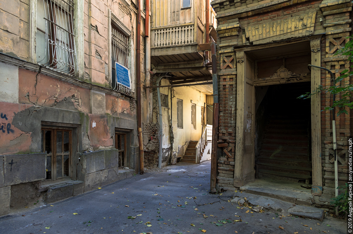Да, несколько главных улиц типа проспекта Руставели грузины более-менее привели в порядок. Но граница "реставрации" часто заканчивается уже за углом этого здания на боковом фасаде.