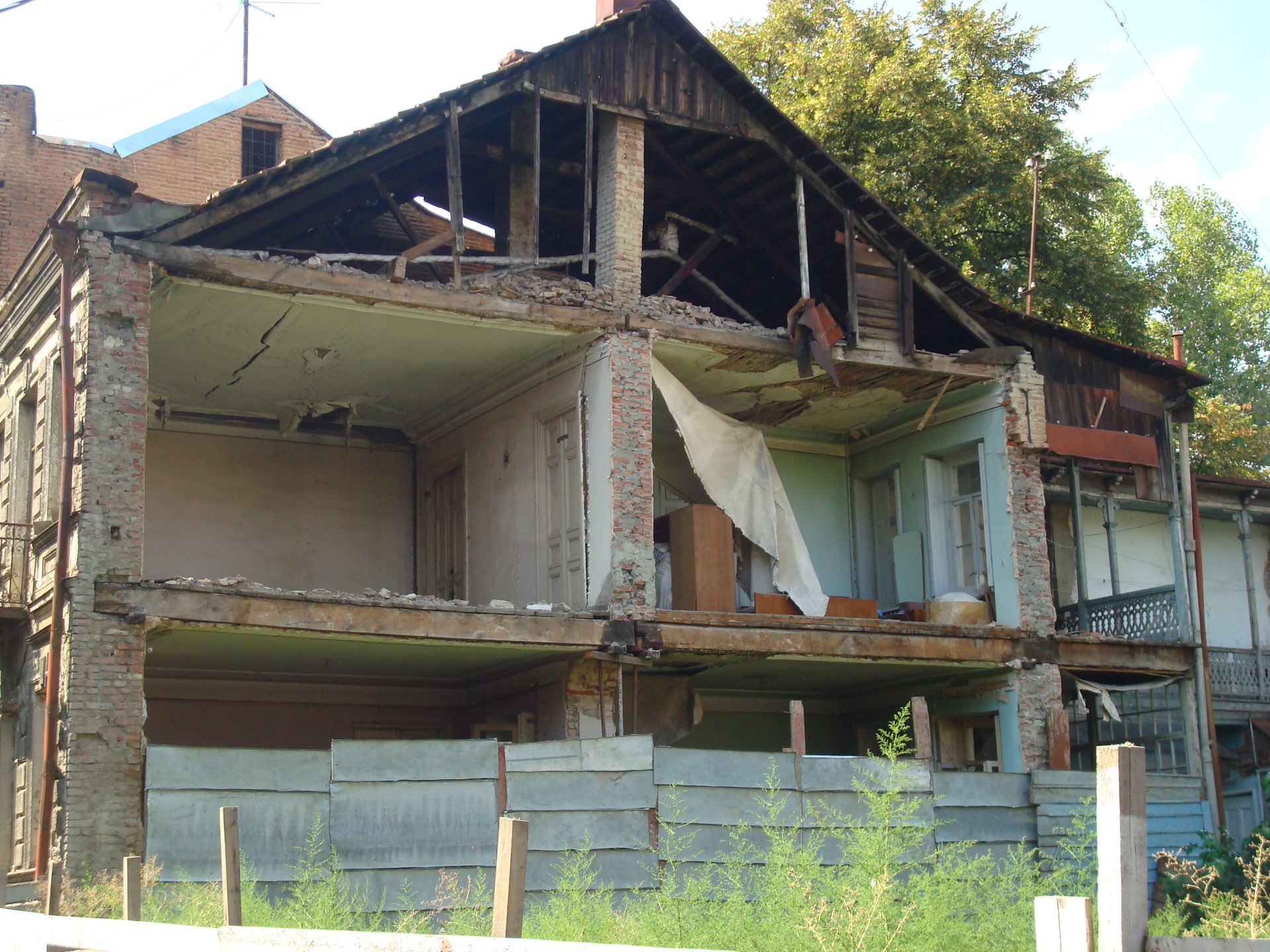 Грузины рассказывали, что памятники архитектуры можно только точно восстановить, а не оставить фасад (в лучшем случае), как у нас. Это очень дорого, поэтому не берутся. А денег там, понятно, пока немного.