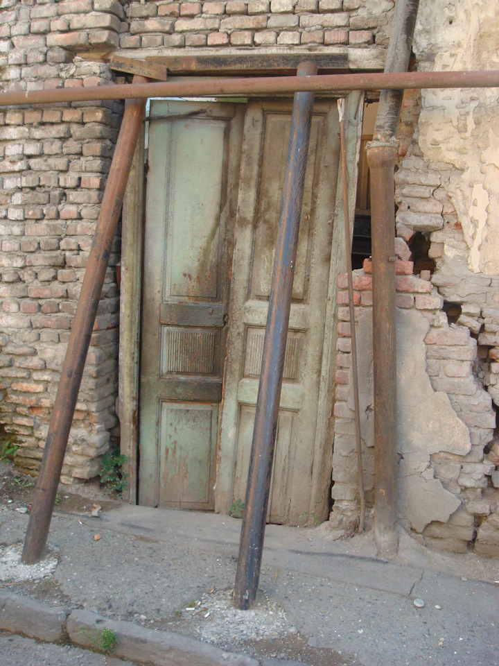 Гуляли с тётей по улочкам старого города, специально разруху не искал, просто фоткал. Печали добавило землетрясение в лохматом году, после него всё так и осталось. Горизонт на фото не завален, фотошоп не применял.В доме с подпорками живут, при нас вышли жильцы.