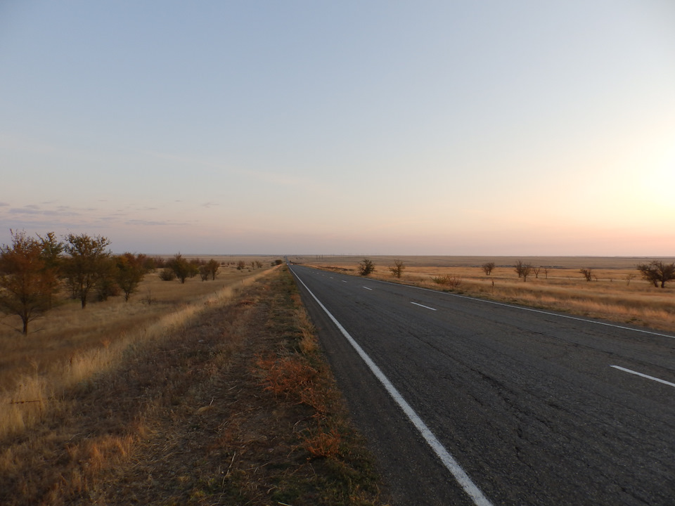 В 5:00 подъем и дальше в путь. Калмыкия утром прекрасна, ни души.