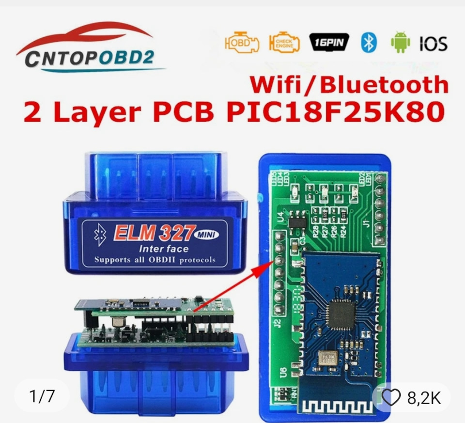 Смотри, что есть на AliExpress! Суперкомпактный сканер ELM327 Bluetooth V1.5 с двойным Pic18f25k80 WIFI ELM 327 V1.5 OBD2, универсальный диагностический инструмент для Android IOS за 745 ₽ — уже со скидкой -28%