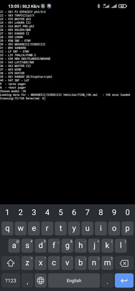 Подскажи пожалуйста как прочитать Ларгус с мотором к4м и к7м? Если его в списке нет. Как Логан или Сандеро не открывается