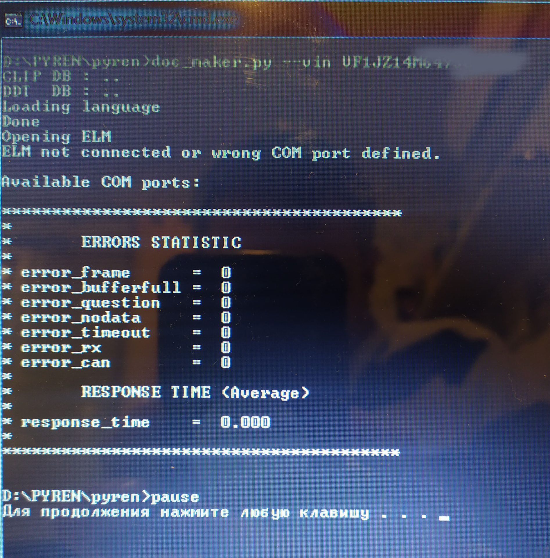 Андрей, здравствуйте, установил по вашей Видео инструкции Piren и Python, все установилось по Windows и Все работает! НО не могу запустить создание документации: doc_maker.bat (он не может найти ELM адаптер). "…wrong port COM defined" -где-то прописан не тот порт что-ли? как его изменить? (а судя по вашему видео — там вообще подключение ELM не требуется для создания документации…)
