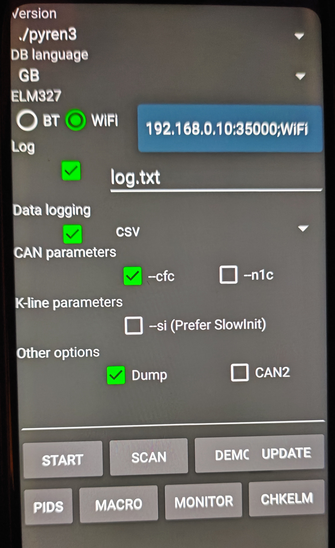 Разобрался. Всё дело было в "кривом" ELM327. А так через logan соединяется.