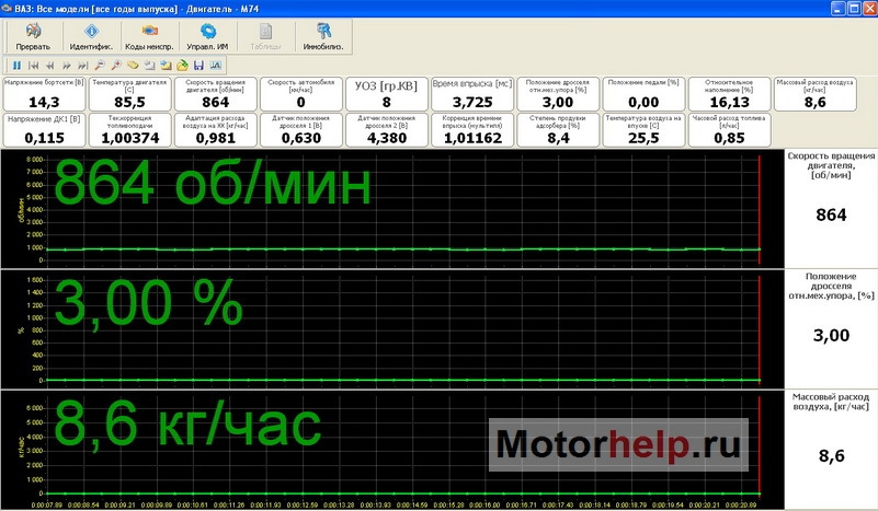 Теперь рассмотрим подробнее, как на практике ведут себя эти параметры. Поскольку для диагностики я пользуюсь программой SMS Diagnostics (Алексею Михеенкову и Сергею Сапелину привет!), то все скриншоты будут оттуда. Параметры сняты с практически исправных автомобилей, за исключением отдельно оговоренных случаев.