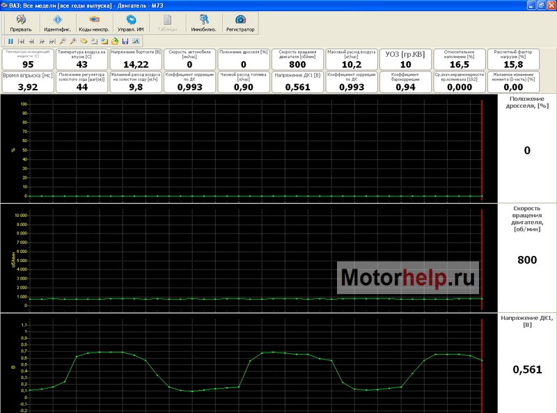 2.6 При наличии признака работы двигателя в зоне регулировки по сигналу датчика кислорода последний должен рисовать красивую синусоиду от 0,1 до 0,8 В.