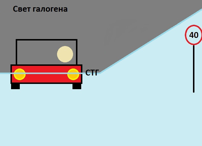 На самом деле, знаки видно и при ближнем свете с правильно настроенной СТГ — хоть и тускло, т.к. яркости фары хватает их засвечивать. Ну, и я все-таки не гоняю, тем более по неосвещенным участкам, так что времени всмотреться в знак предостаточно.
