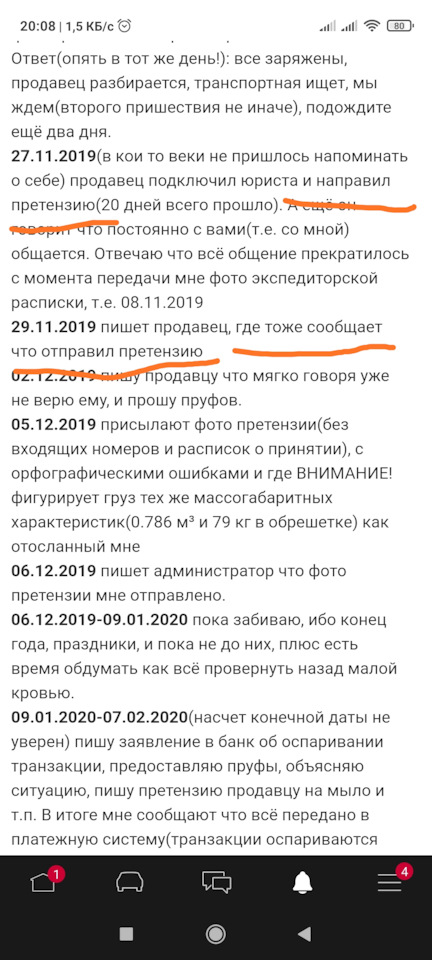 27.11.2019(в кои то веки не пришлось напоминать о себе) продавец подключил юриста и направил претензию(20 дней всего прошло). А ещё он говорит что постоянно с вами(т.е. со мной) общается. Отвечаю что всё общение прекратилось с момента передачи мне фото экспедиторской расписки, т.е. 08.11.2019