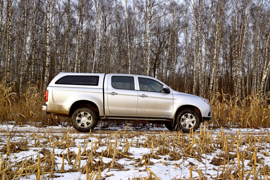 И опять “китаец” порадовал! Коэффициент понижения в двухступенчатой раздатке Borg Warner-2,48:1. На первой передаче пикап едет со скоростью медленно идущего пешехода, стартовать можно со второй и сразу переходить на третью. Да, бензин — не дизель, но тяги “на низах” достаточно, хотя в теории крутящий момент не сильно впечатляет: 290 Н.м., зато доступен он в широком диапазоне с 1800 до 4000 об/мин. Управление газом плавное, приноравливаться не надо, как нажал, так и поехал. Можно давить по чуть-чуть, не боясь сорваться в пробуксовку, но если нужно, мотор раскручивается не в пример быстрее дизеля.
