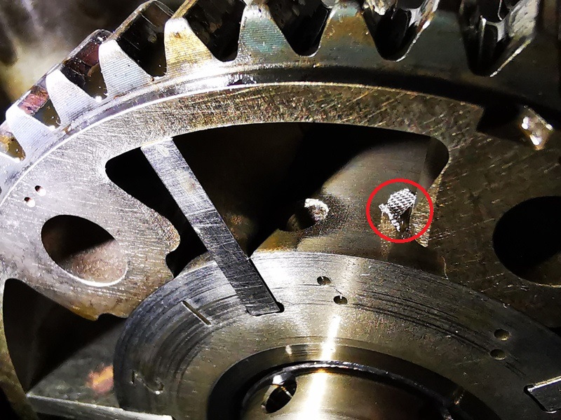 Бывает отрывается маленький кусок сетки, тогда она попадает в масляный канал, проходит через весь блок и оседает на сетке вакуумного насоса. По сути в этом нет ничего страшного, да и явление не частое, обычно оторванная сетка находится на входе в масляный канал и удалятся при замене цепи.Правда я несколько раз встречал куски сетки в камере фазорегулятора при замене пластин .