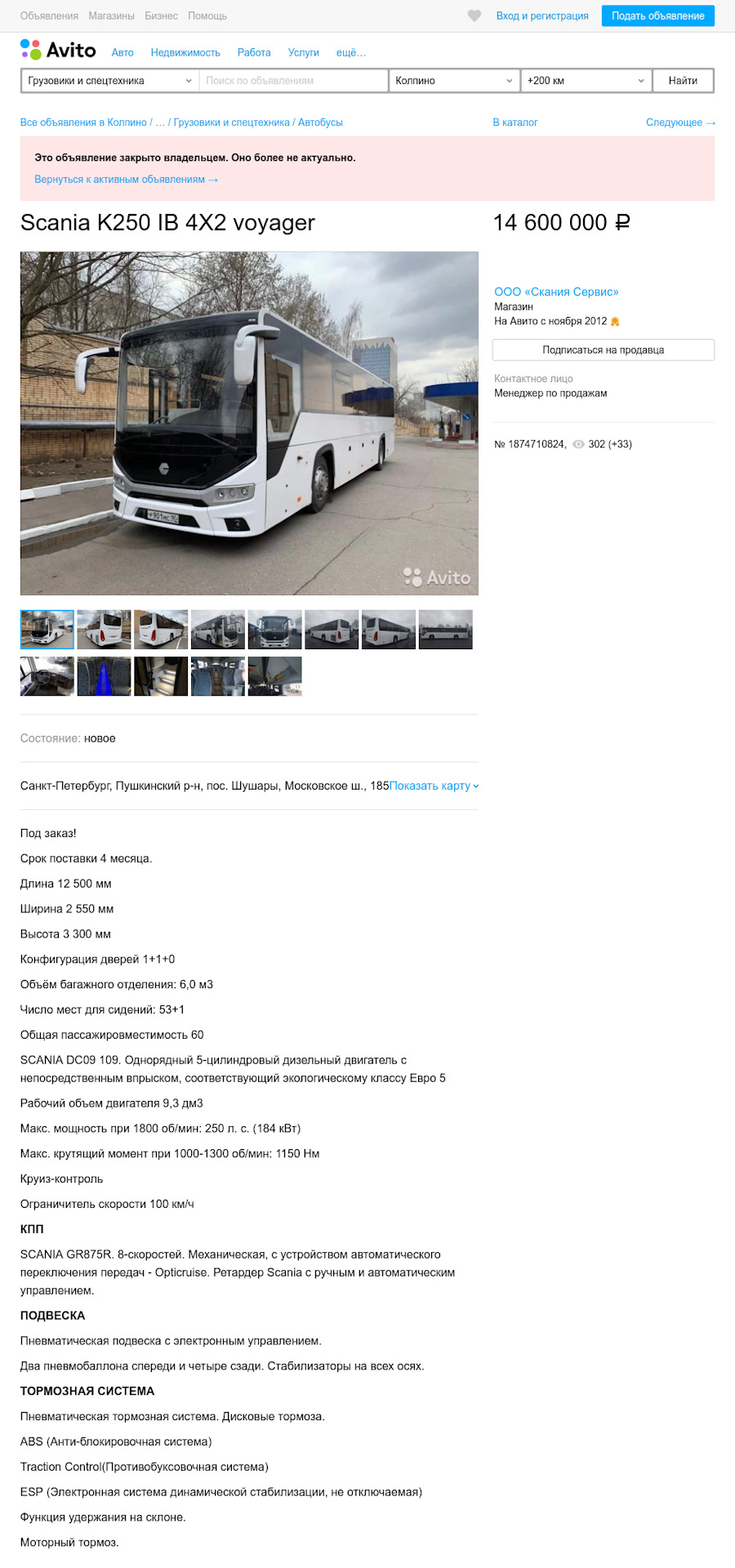 Интересно, что пару месяцев назад на Авито в разных регионах вдруг стали возникать объявления от дилеров о готовности продавать те самые "Вояджеры" — и даже была озвучена стартовая цена в 14,6 миллионов. Правда, через считанные минуты после того, как я упомянул о них в Busstagram, эти объявления стали загадочно и скоропостижно исчезать… Мистика какая-то (=