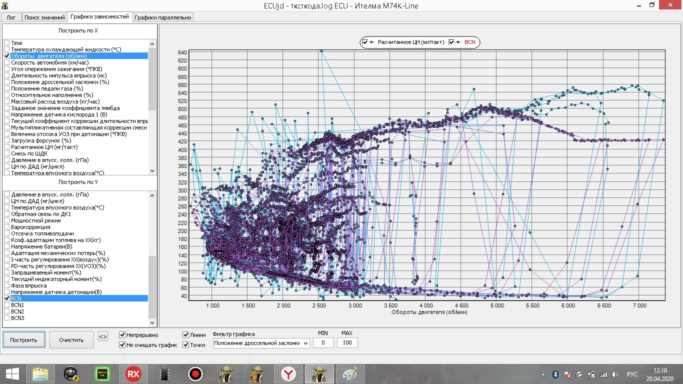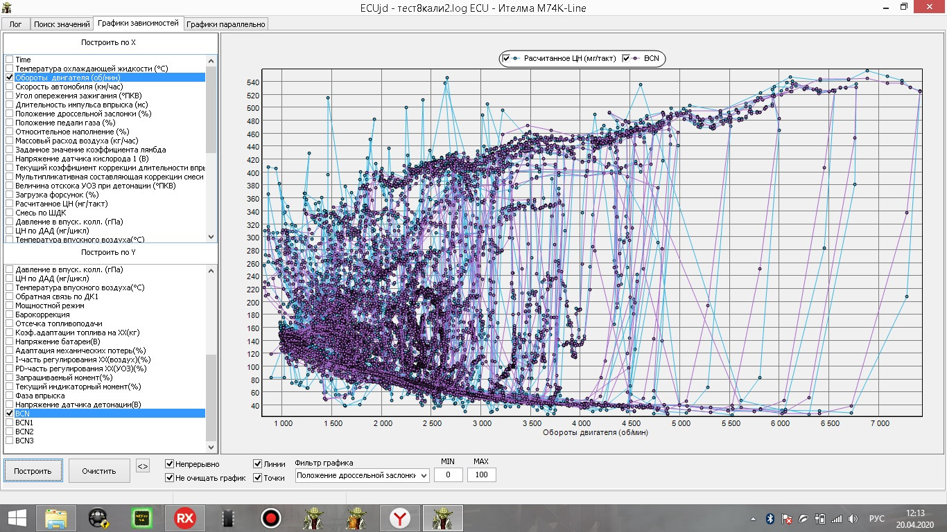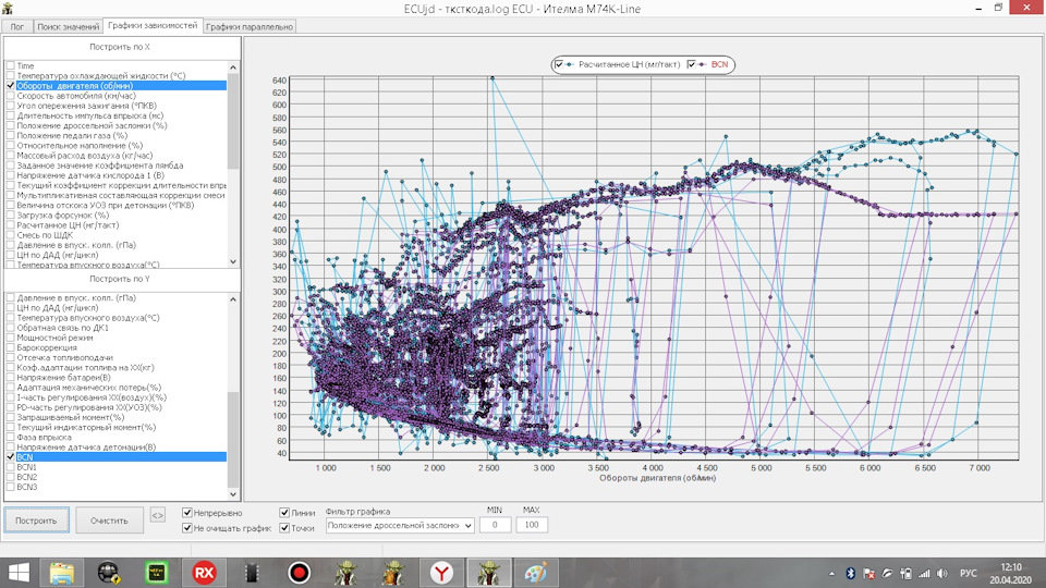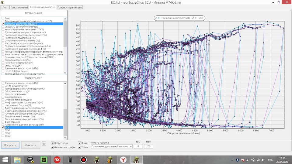 Всем доброго дня. Недавно писал про настройку своей машины(vk.com/wall-168466733_1779), в итоге этой настройки выяснилась проблема, которая иногда всплывала, но всплывала она на турбо. Собственно поэтому турбо и не строили на М74. Проблема заключается в том, что смесь при больших наполнениях обеднялась, при чем ни одной доступной калибровкой вернуть ее не было возможности. Та же учесть постигла и меня, целую неделю посветил разбирательствам с этой проблемой. При анализе логов моей машины изначально смутила ПЦН на высоких оборотах и нагрузках, но на откаточном логе явного обеднения не замел, но позже на готовой прошивке, провал по тяге был очень заметен, накатал логов и увидел что творится со смесью, смотрите сами на первом графике. Все дело оказалось в том, что рассчитанное ЦН из МРВ показывает нам нормальное наполнение, а вот ЭБУ "думает" иначе. Вывели в лог ЦН для расчета времени впрыска и все стало понятно. Смотрите график второй, на нем видно как различаются данные. Кстати обратите внимание, что рассчитанное из МРВ ЦН имеет всякие выбросы, а вот используемое в ЭБУ для расчета времени впрыска таких всплесков не имеет, из чего делаем вывод что оно отфильтровано. Дмитрий (mastereditpro.ru/) согласился помочь с поиском этого фильтра, фильтр был найден, настроен, все пока в режиме теста, НО результат уже есть! Смотрите на третьем графике, теперь наполнение сходится. Ну и сесь стремится к заданной, смотрите последний график. Этих калибровок пока в редакторе нет, но после полного завершения тестов, все будет доступно.