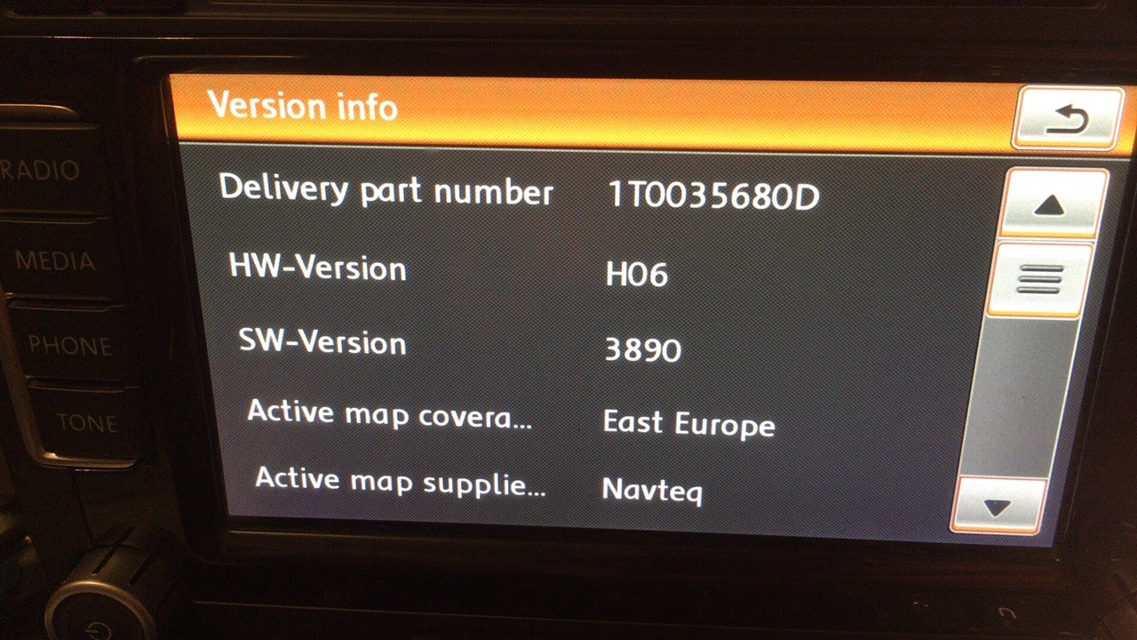 Суть проблемы — программные проблемы, и для ремонта нужно обновить сию поделку немецких мастеров. А для этого нужно знать версию железа и софта (которые часто не совпадают с тем что на наклейке). В данном экземпляре RNS-ки версия софта была 3890 и ваговский партномер 1T0035680D: