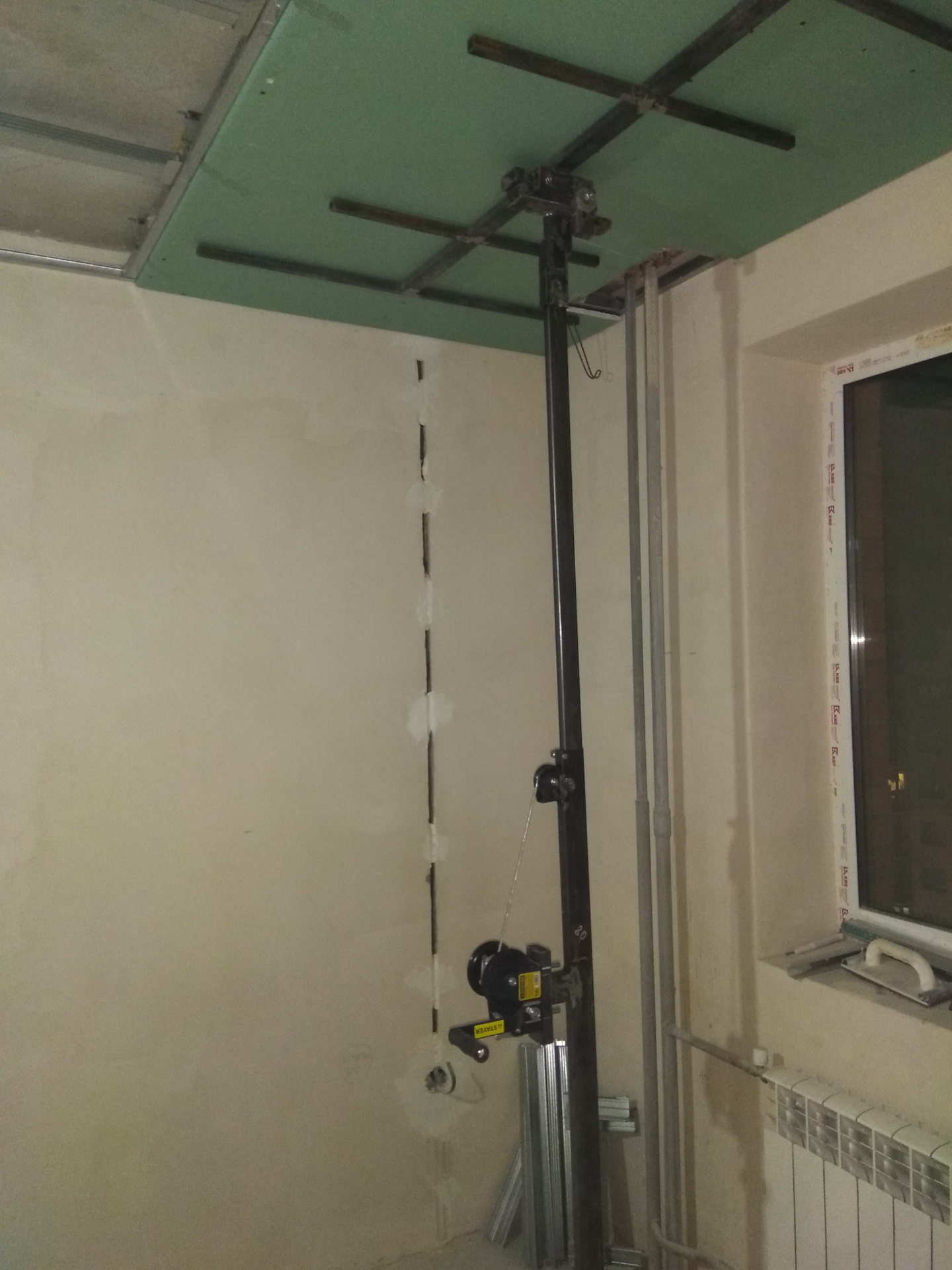 Голова подъемника съёмная… Кругом зазоры, если пол не ровный, подъемник все равно прижимает гипсокартон вплотную к потолку.
