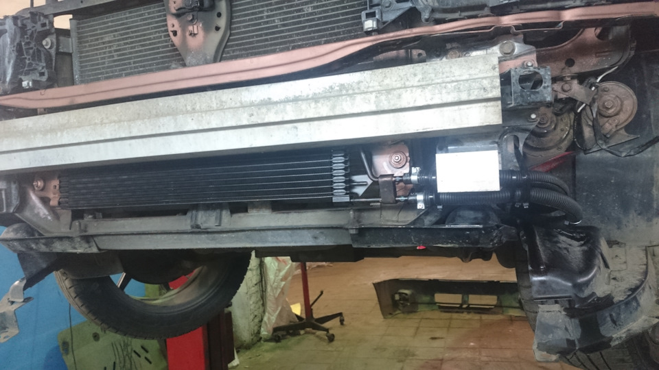 Это пример для тех, кто не хочет морочится с термостатом, а просто задумает поставить внешний радиатор акпп.