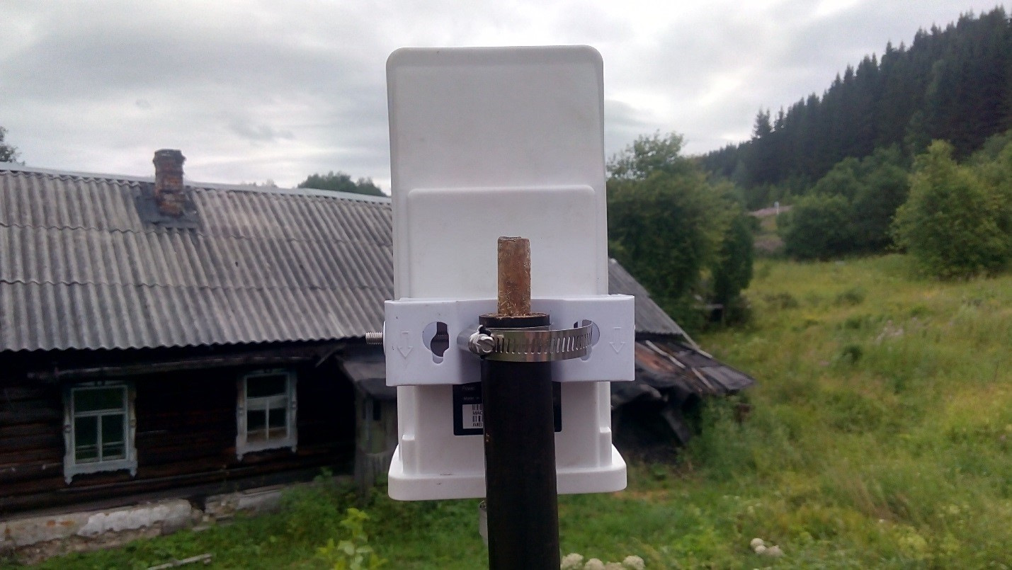 Внутри действительно две антенны. Какие они всенаправленные, выясним после установки. Забегая вперед, скажу, что утверждение близко к истине. Юстировка по горизонту практически не дает прироста скорости. Скорость зависит от высоты установки, о чем честно написано на сайте продажи этого роутера. Ставим уличный модуль на первом уровне: