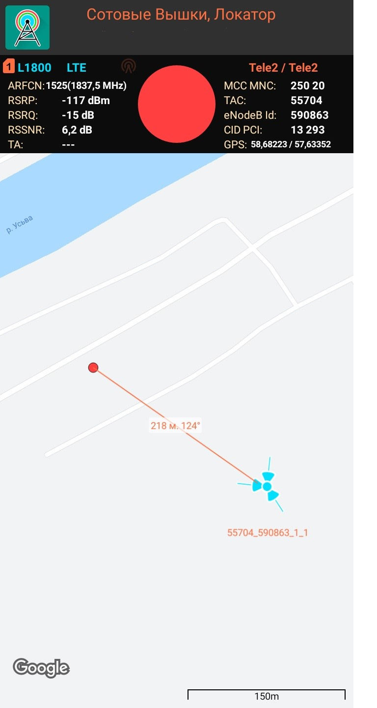 Обратите внимание на расстояние до вышки: немного некорректно отображено значение. На самом деле до вышки метров 800, может, какой отраженный сигнал принимает. Я не знаю принцип работы этой программы, но главное, она нам показала, что интернет 4G LTE тут есть.