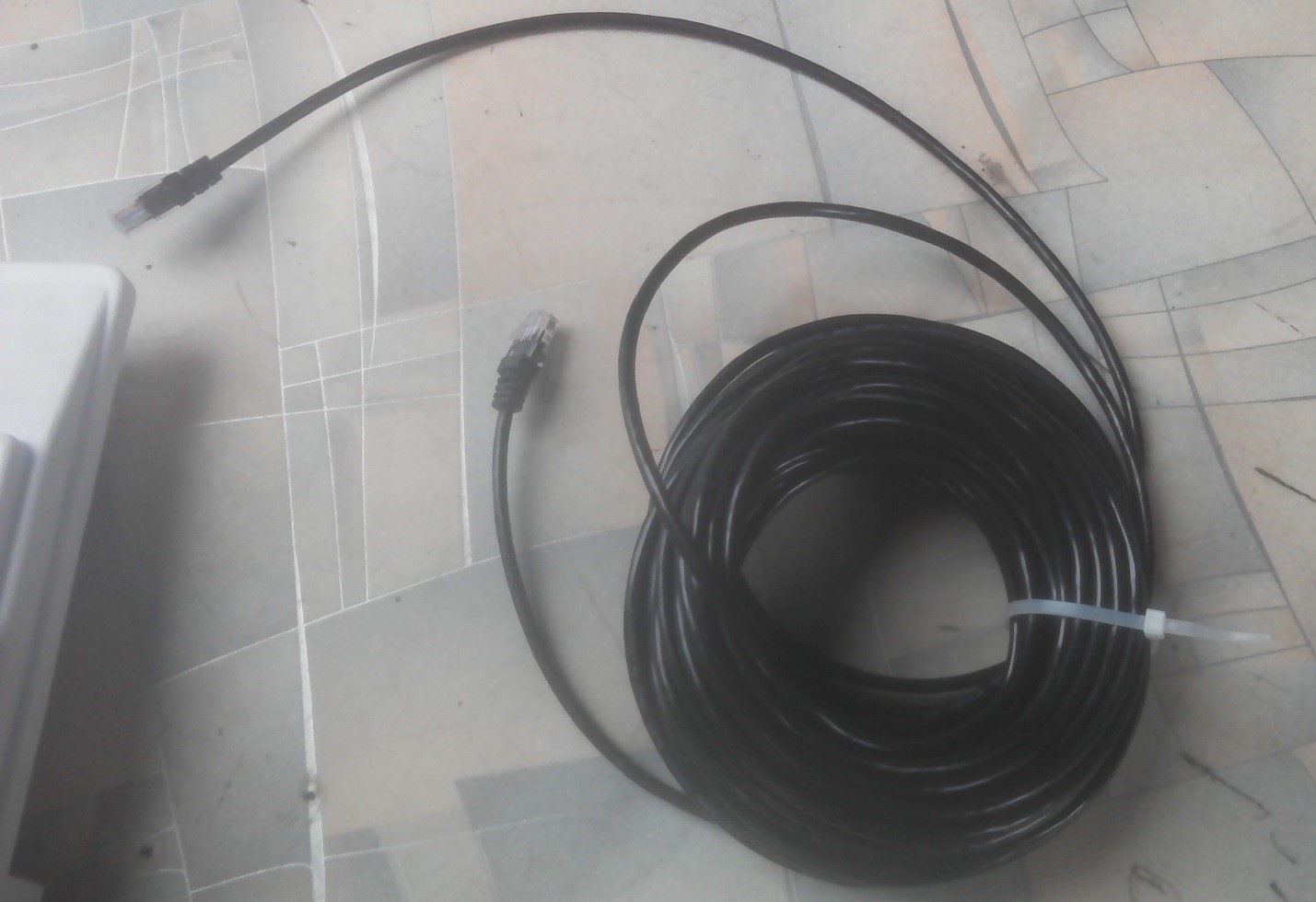 Кабель категории 5e, идущий в комплекте, обеспечивает связь двух частей не только передачей данных, но и питанием по POE-технологии, так что дополнительных блоков питания не нужно. Длина его 20 метров, и на мачту поднять, и по дому проложить должно хватить с запасом.