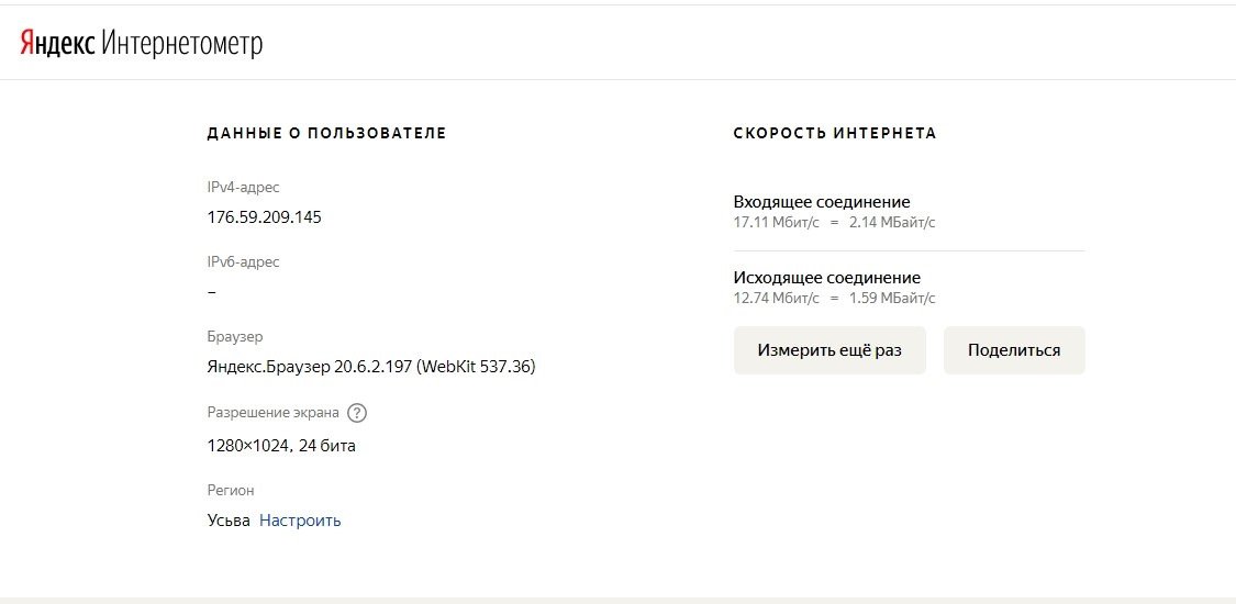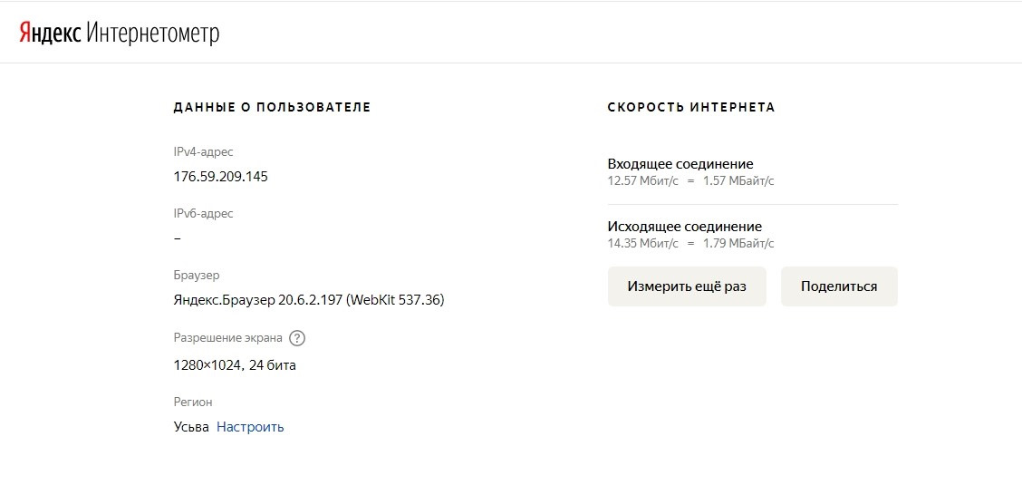 После того, что было ранее, скорость интернета кажется пределом мечтаний, но для полноты картины попробуем проверить сервисом Яндекса – Яндекс.Интернетометр.
