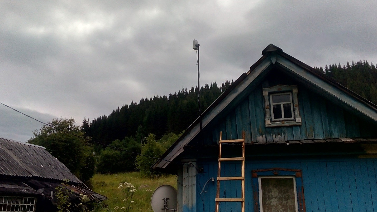 Первая установка проходит на уровне чердачного окна, но кажется, это недостаточный подъем, так как на сайте поставщиков было написано: «Выше поставишь, больше скорость получишь». Кстати, там же написано, что в уличной части расположены две всенаправленные антенны и из этого следует, что точно юстировать ее на вышку оператора лишне, они всенаправленные. Проверим, так ли это. Разобрать недолго, пусть гарантия даже потеряется, но интерес взял свое.