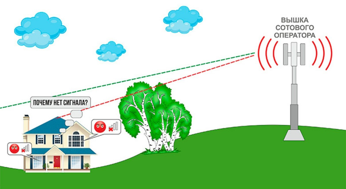 Дом стоит в низине, сотовые вышки операторы, как правило, стараются устанавливать на возвышенностях: так осуществляется более широкий охват обслуживаемой территории. Для покрытия всей площади нужно устанавливать станции и в логах, а это экономически не выгодно. Особенно заметно это в поселках, которые относятся к сезонным, например, дачные поселения, полностью заселенные летом и практически пустующие в зимнее время, зачастую бывают лишены полноценной связи.
