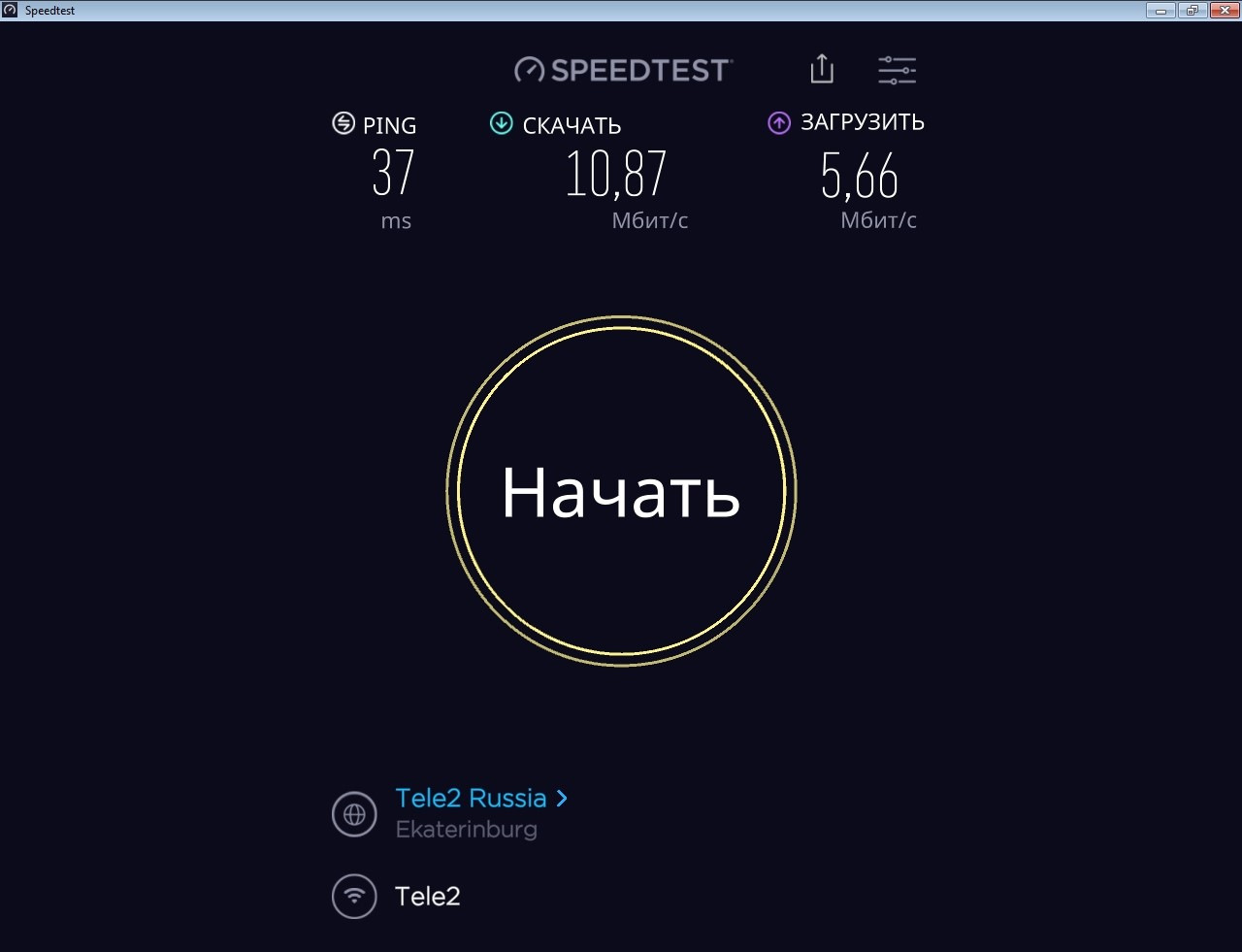 Начинаем наши тесты. Первый уровень высоты установки антенны проверим на скорость сервисом speedtest. Пользоваться будем десктопной версией программы для Windows:
