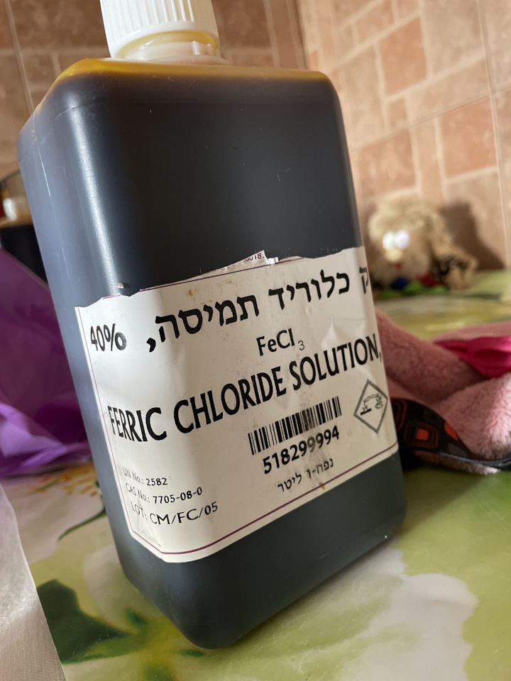 В заключении, хочу еще раз поднять вопрос безопасности- будьте предельно осторожны с хлорным железом!Работать необходимо в маске и перчатках, не допускать попадания раствора на кожу, тем-более на слизистую.