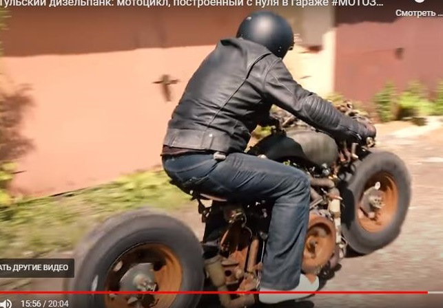 Первый взгляд и восприятие то что это груда металлолома сваренная в одну кучу, и ещё на двух колёсах так блин и заводится, да ещё и дизельная ! Короче это шок он нереально продуман и красиво собран викаждом болтике, заклёпочке и тут вообще шедевр в любой детальке и механизме ! Автору мотоцикла просто поклон и уважение за шедевр мирового уровня !