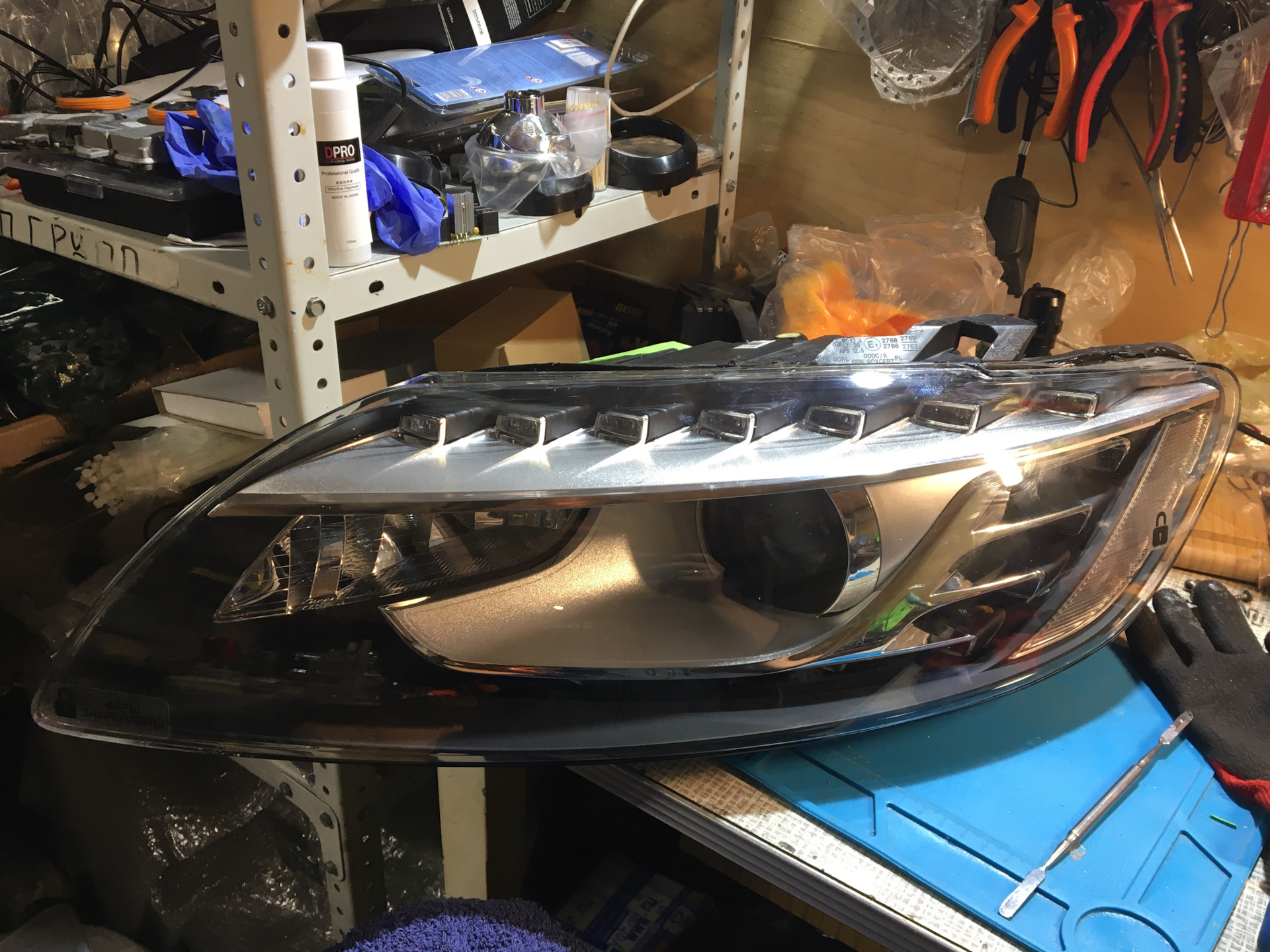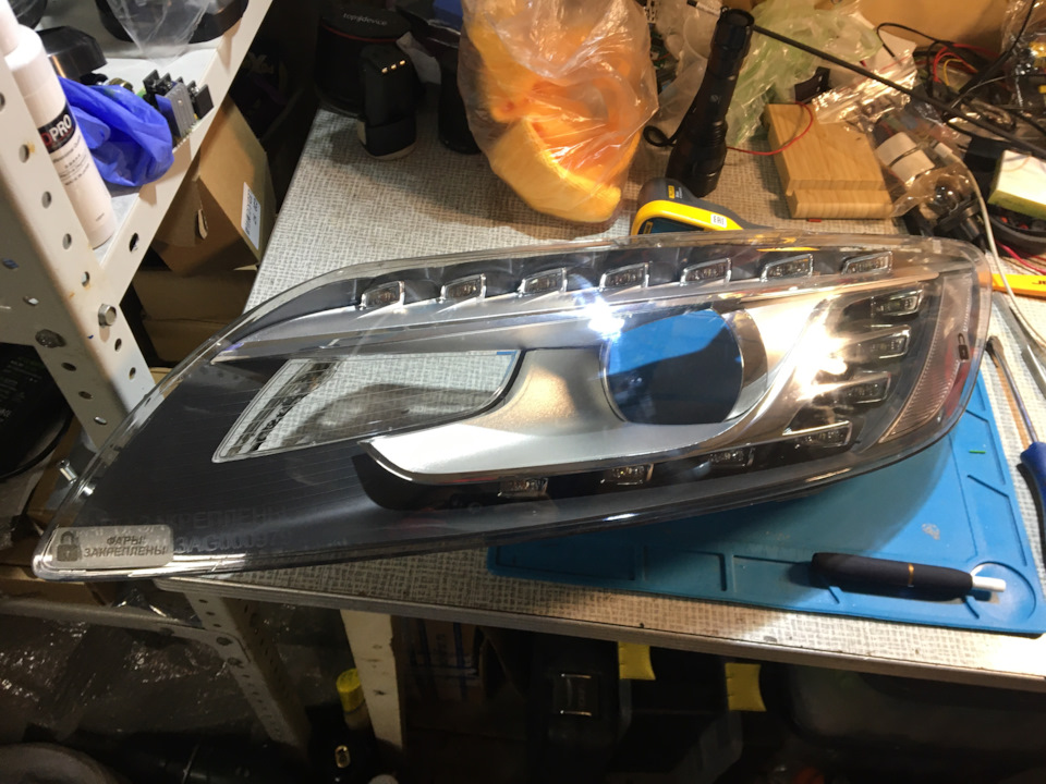Фары уже после переборки, по заявлению владельца была замена отражателя на новый оригинальный, проблема была в активном запотевании, визуально по герметику проблем не было, в качестве финасторов мастер использовал скобкт как на ранних версиях фар hella, запресованных на горячую. Герметик своих свойств не потерял, но… как всегда возникает это но, еще до замены отражателя, владелец пролил фару затекающим герметиком, он хоть и затек куда нужно но при замене отражателя его до конца не вычистили и не обезжирили поверхности перед склейкой и на это чудестный силиконовый герметик не липнет ничего.
