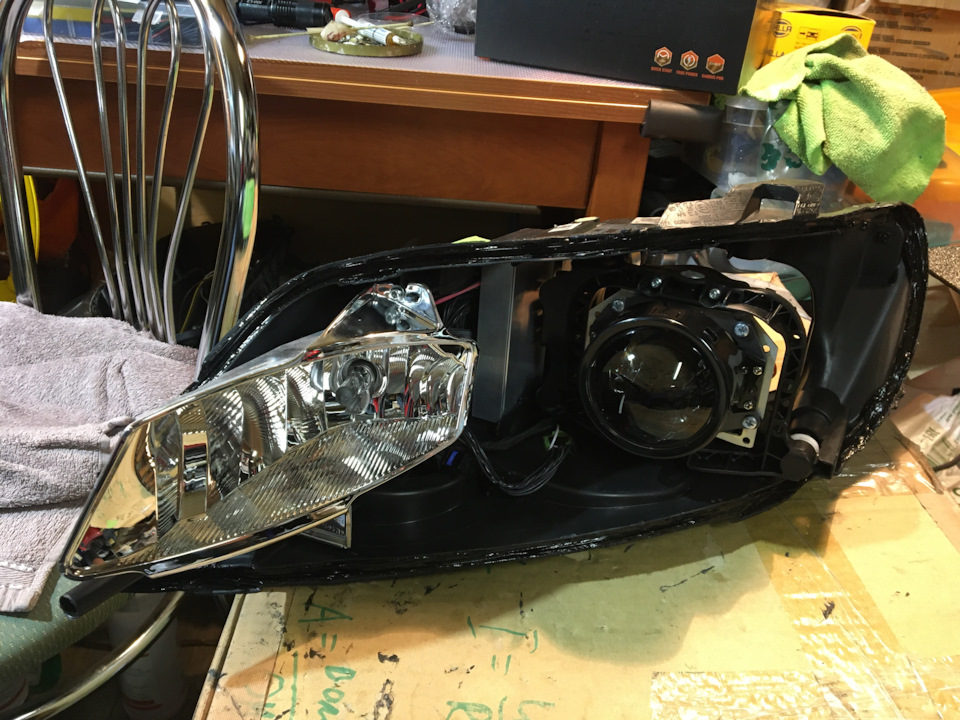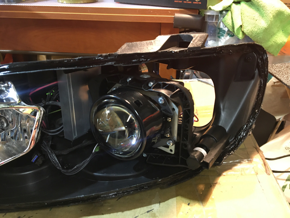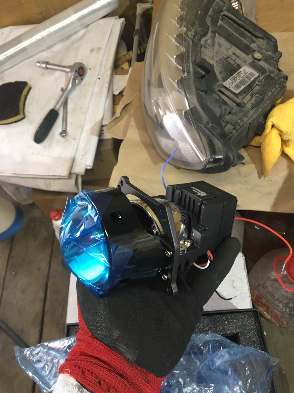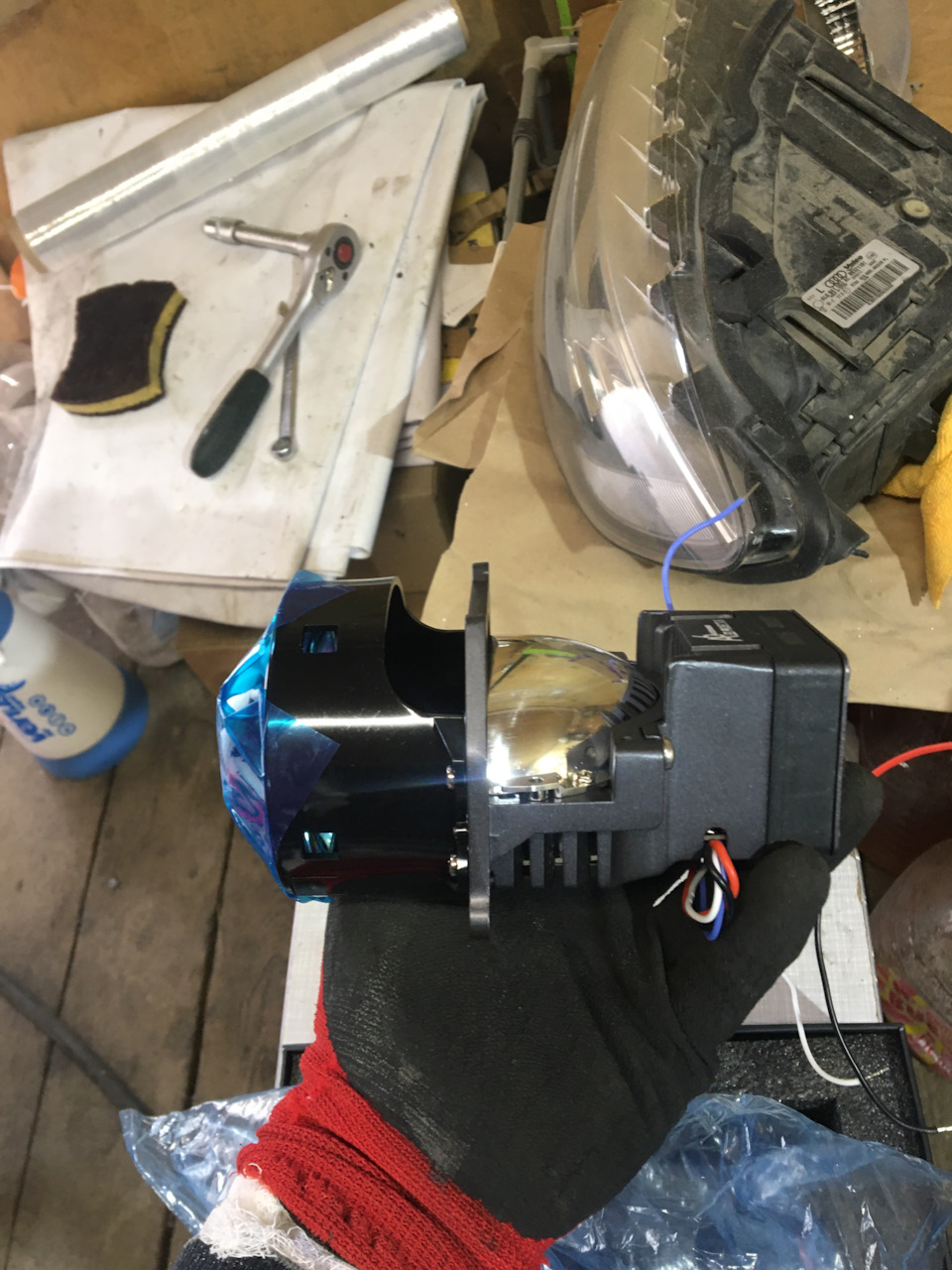Отражатлям которым по заверению владельца всего два месяца настал закономерный конец. Решили до кучи и линзу диодную поставить.