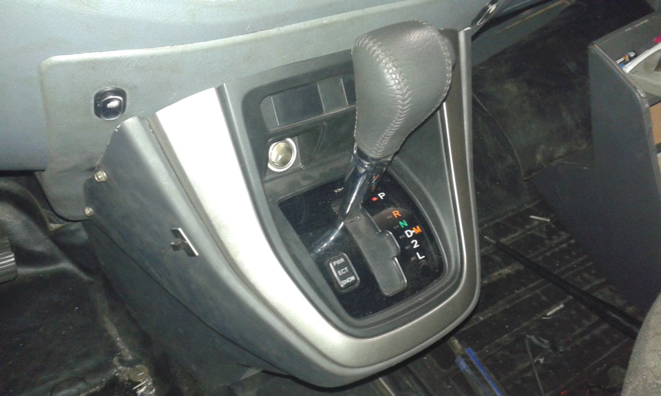 Пока Саня вытащил старый мотор и вкорячил новый, я начал подготавливать перефирию компа и разбирать/собирать салон. Селектор было решено установить от Харриера, поскольку он там просто прекрасно смотрится, да и не занимает места на полу.