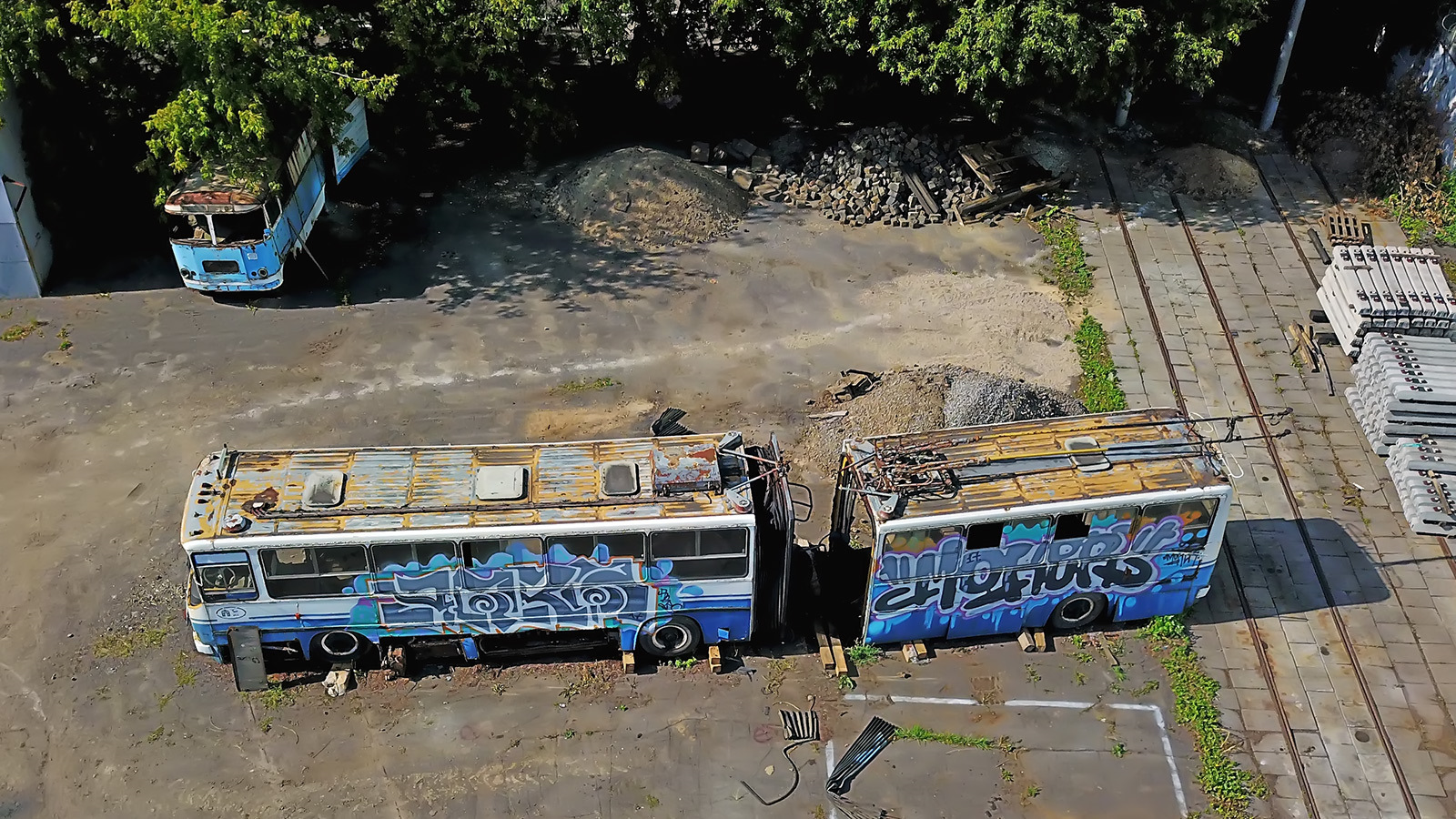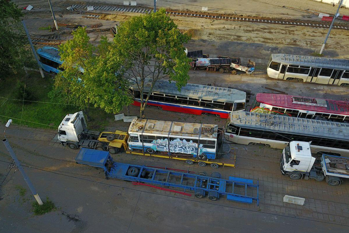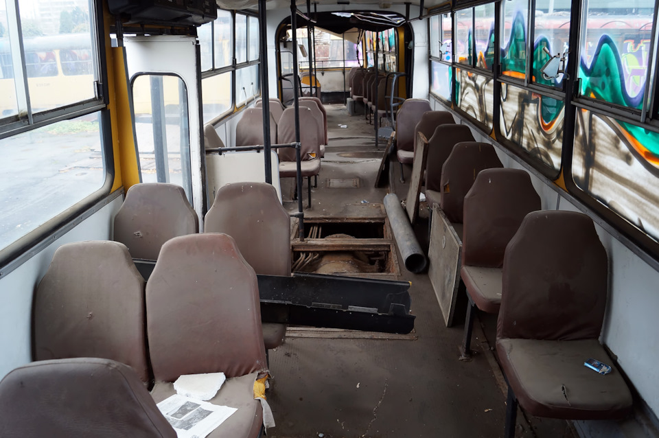 Эх, если бы всё было так просто и легко! Пациент-то к 2020-му стал совершенно нетранспортабельным: на буксир его взять не получится, да и на трал целиком не затащить. Тогда план созрел такой: машину на месте расцепят, погрузят "половинки" на два полуприцепа-тяжеловоза, и в таком виде доставят… на тот самый СВАРЗ для восстановления (большинство музейных экспонатов Мосгортранса в наши дни ремонтируется там)