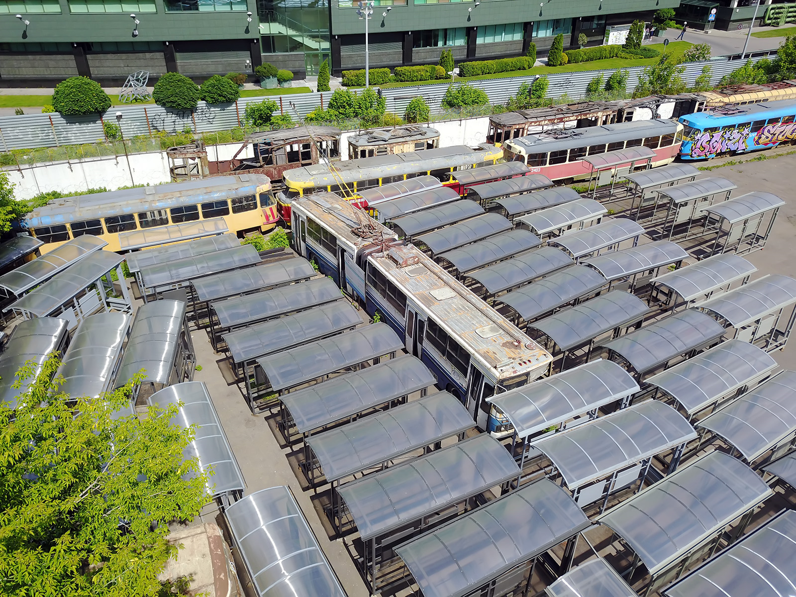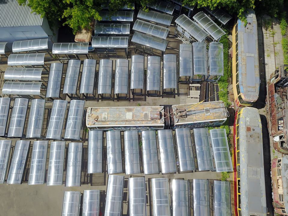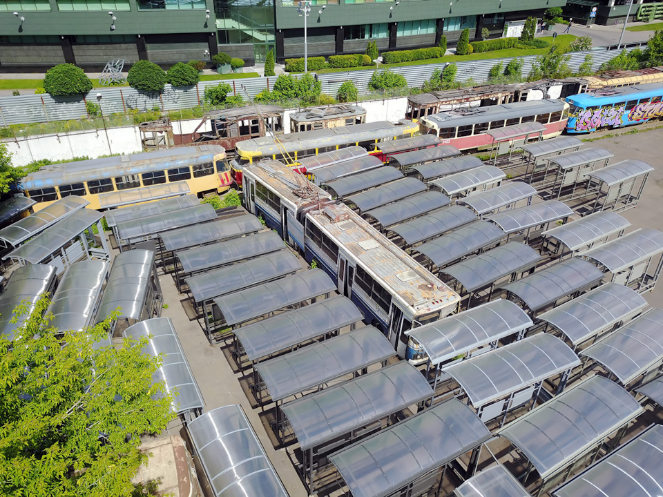 После парада музейный СВАРЗ-Икарус прибыл в запасник на Трамвайном ремонтном заводе, или ТРЗ. Место это — достаточно скорбное само по себе: здесь годами ждали хоть какого-то поворота в своей нерадужной судьбе старые машины, сохранённые для музея (и не только).