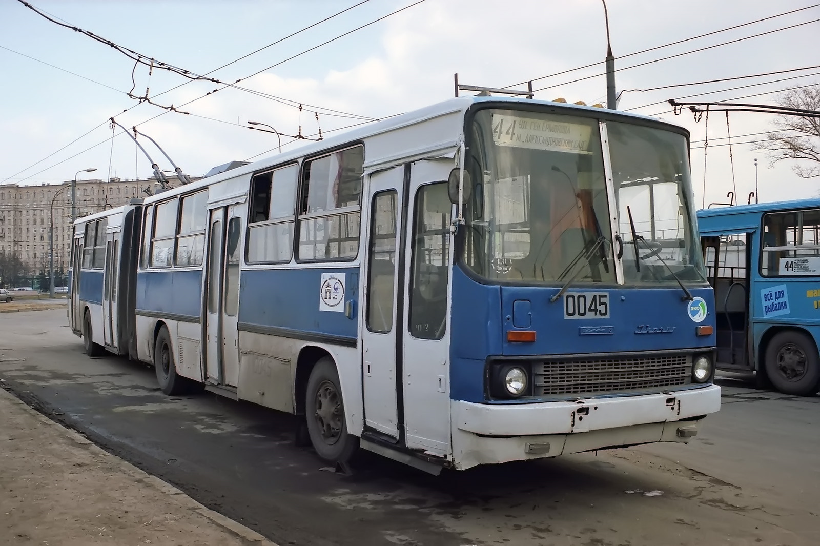Я в больнице лежал где то в филях в конце 1990х скорее всего. Видел синий троллейбус икарус, их много было. И троллейбус с крышей от газ 24