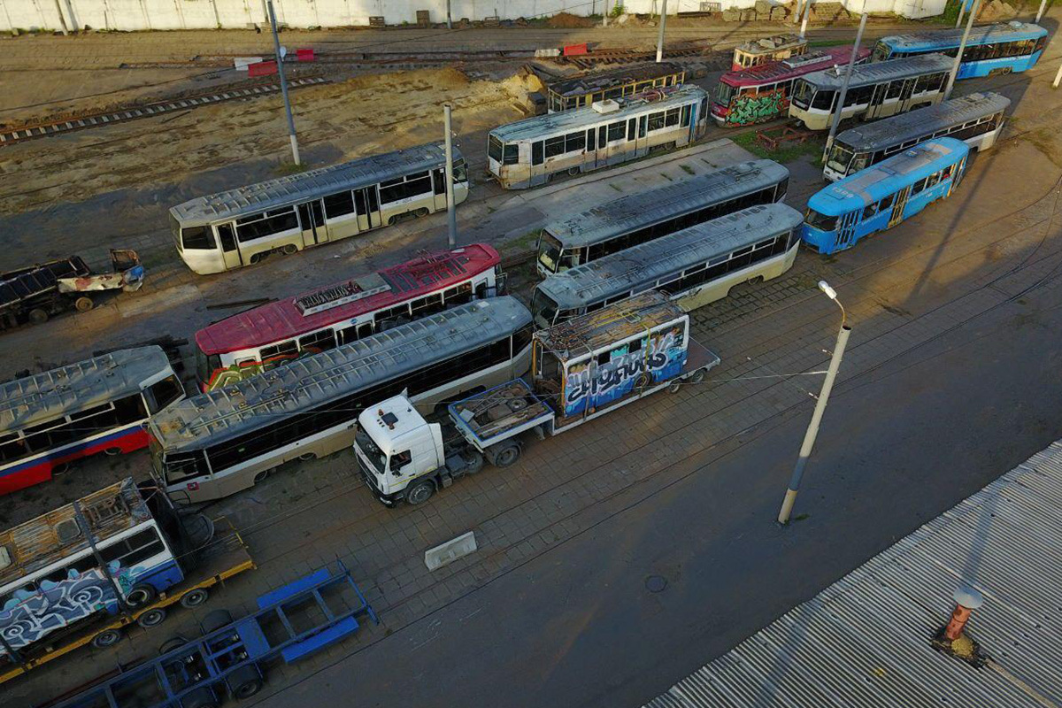 В 2015-м музейному запаснику с ТРЗ пришлось съехать: на его площадке планировалось уложить трамвайные пути, чтобы разместить ставшие "лишними" вагоны к передаче другим городам. Тогда на площадке остались только трамваи, занявшие два крайних пути — а вот техника на шинном ходу уехала на другие площадки.