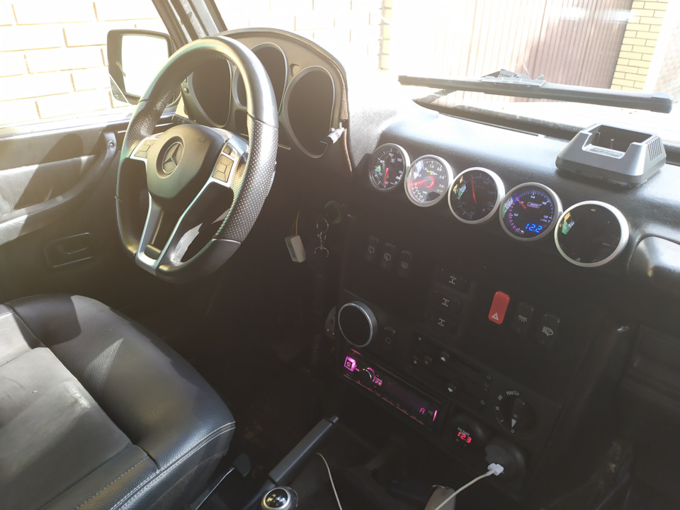 На этом гелике изначально стоял дизель, потом м113 и сейчас 2 Jz gte. Все работы делал Виктор сам. Как едет турбо джей в грязи Виктора устраивает полностью. Наиграется поставит другой мотор.