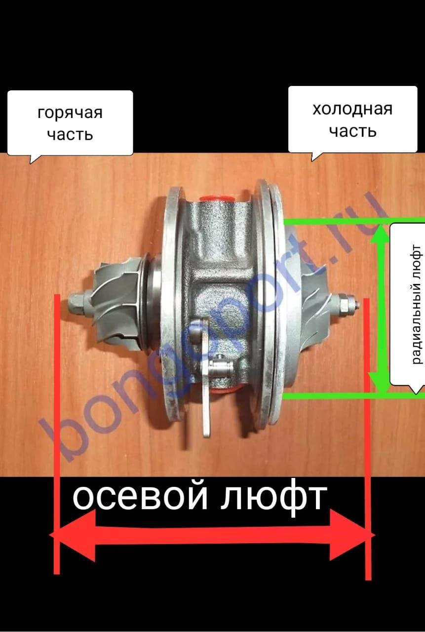 По возможности, открутить от холодной части турбины отвод и покачать пальцами колесо турбины. Осевого люфта ощутимого быть почти не должно. Радиальный на ощупь 0,5 мм.