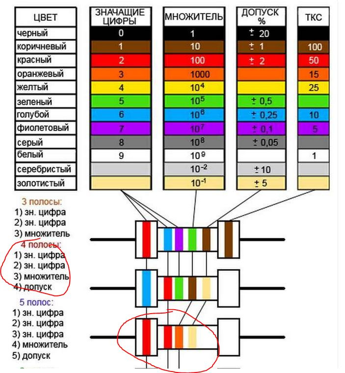Оранжевым — t предохранитель, желтым — резистор.