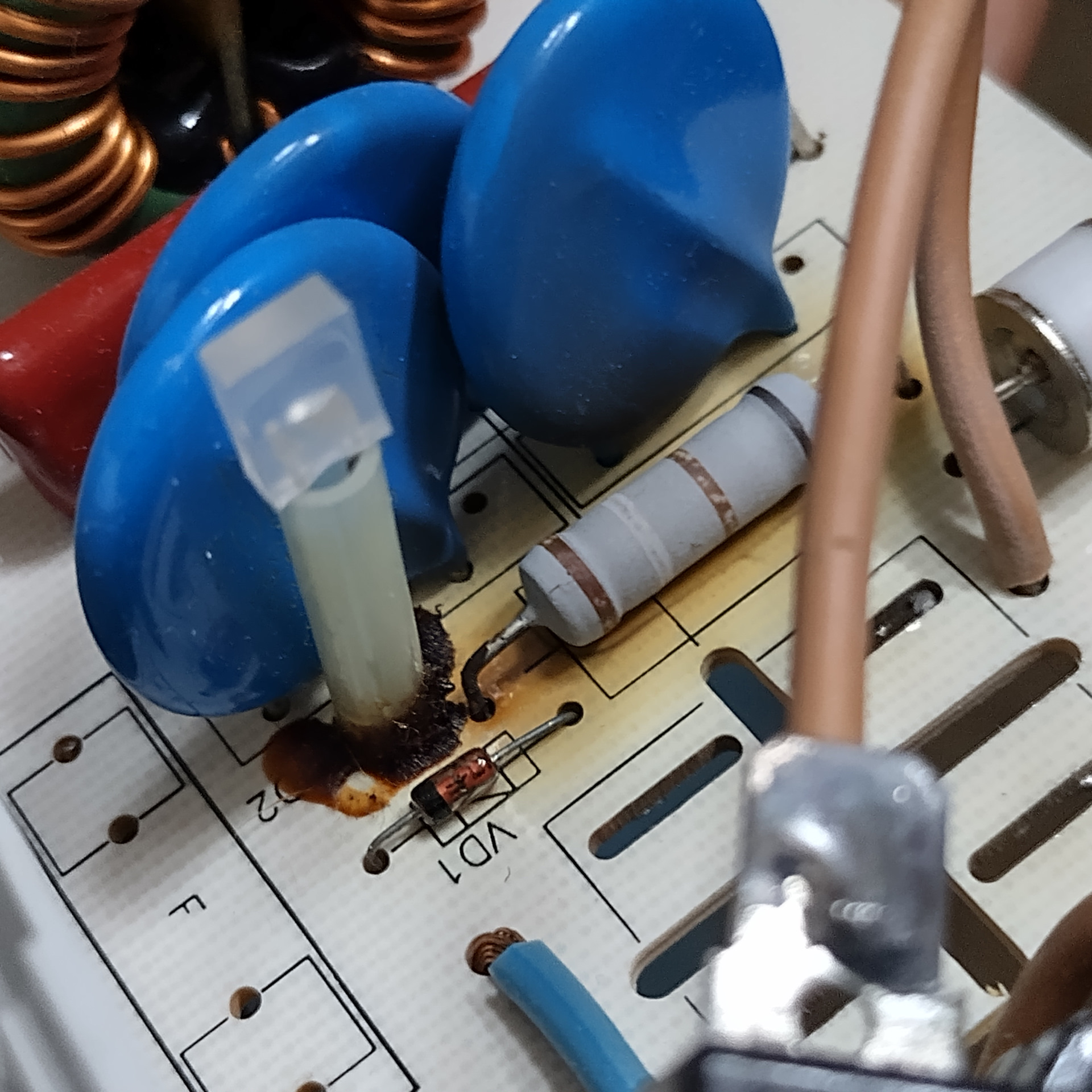 Сгорел Сетевой фильтр Pilot-GL 6 розеток, подскажите куда смотреть. Включаешь лампочка то горит, но тока нет. Визуально смотрю на плате подгар вроде.