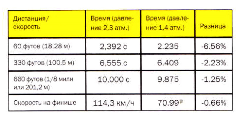 Автомобиль Honda Integra DC2, как видно с графика замера, давление в шинах влияет на мощность. Конечно мало кто будет травиться до 1.4Атм для повседнева, но тут важен сам факт того, что давление в шинах влияет на мощность, точнее на количество механический потерь влияющих на итоговую мощность передаваемую на дорогу, мощность мотора мы давлением в шинах никак не поменяем))