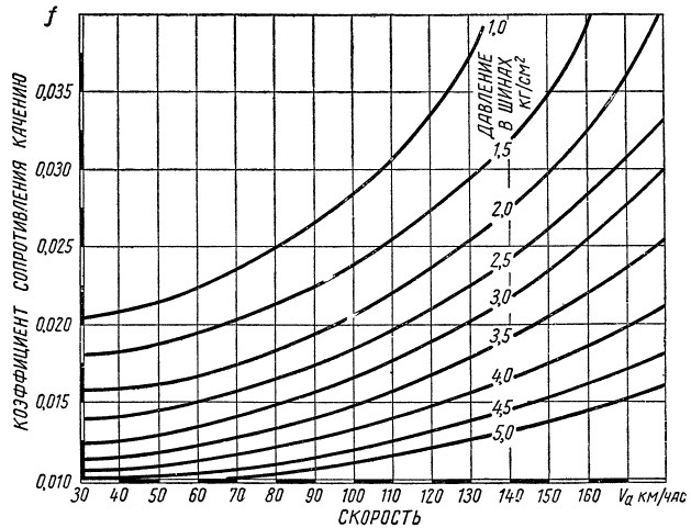 Вот кстати график зависимости силы/коэффициента сопротивления качения от скорости и давления в колесах.